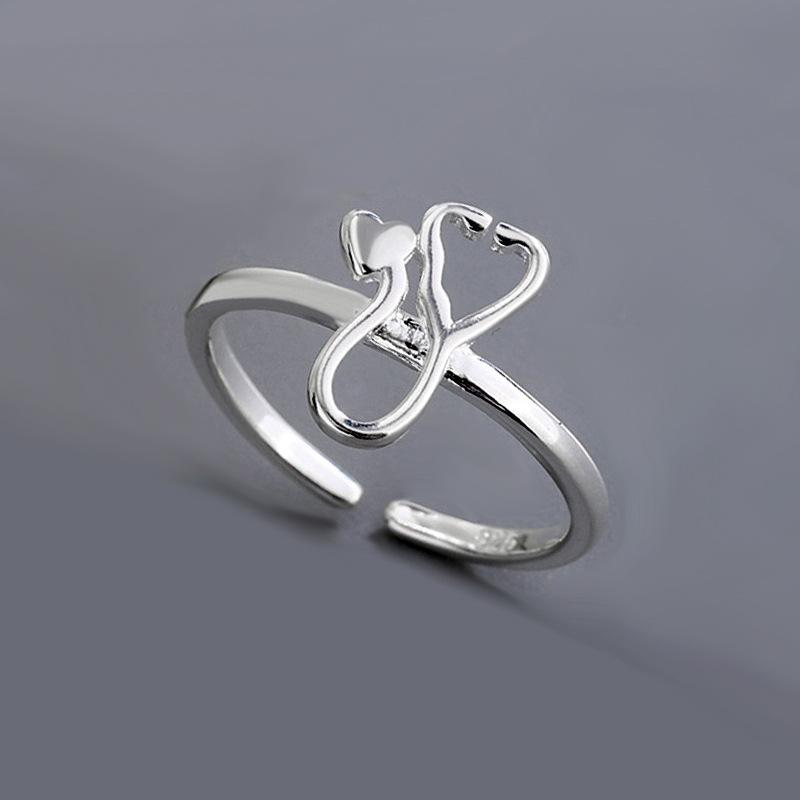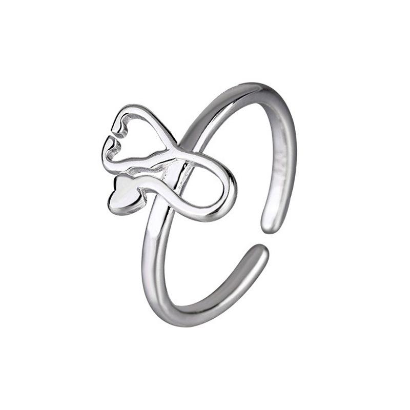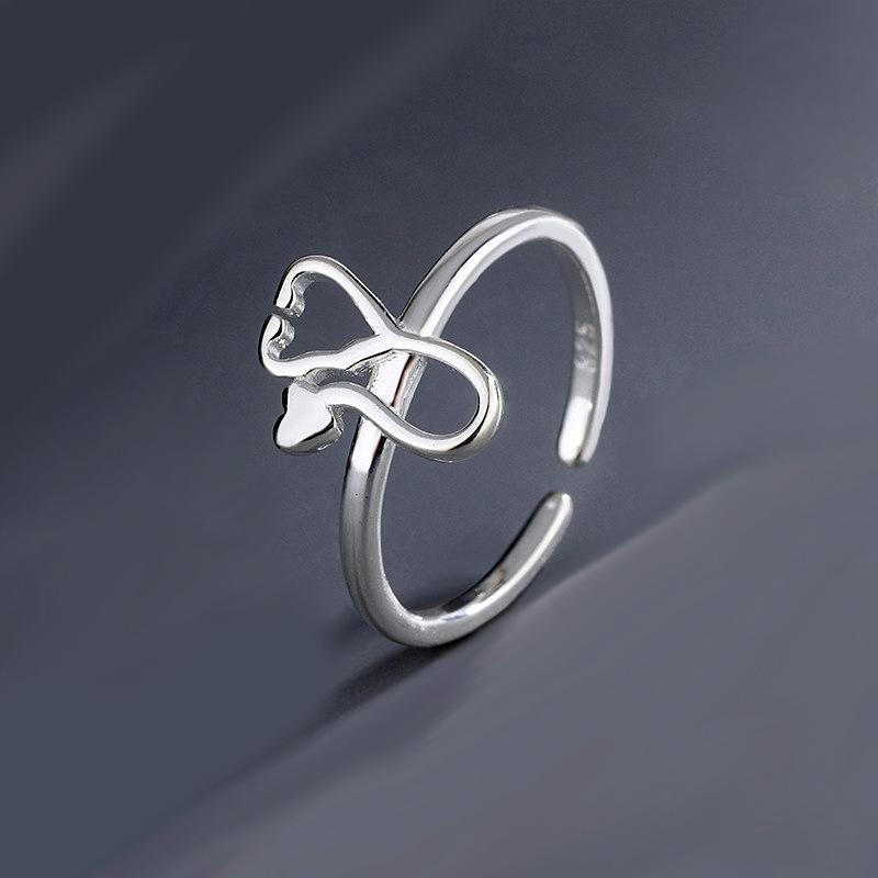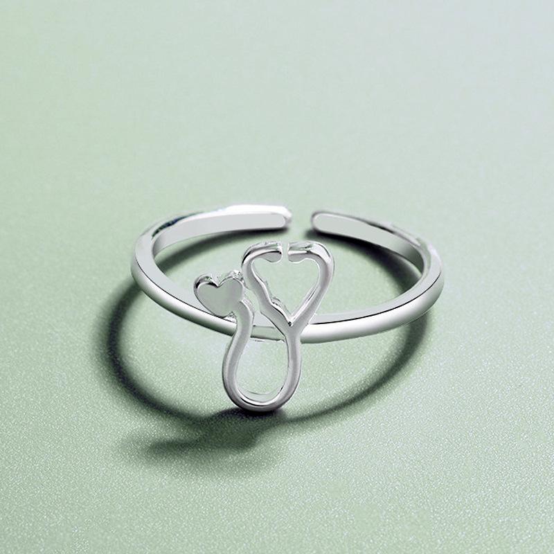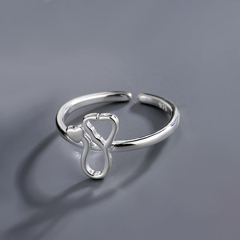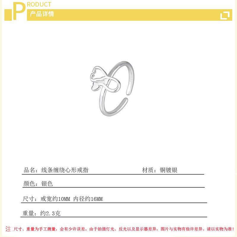 Anillo en forma de corazón con enrollado de líneas plateado diseño de personalidad temperamento dulce literario talla hueco anillo de amor