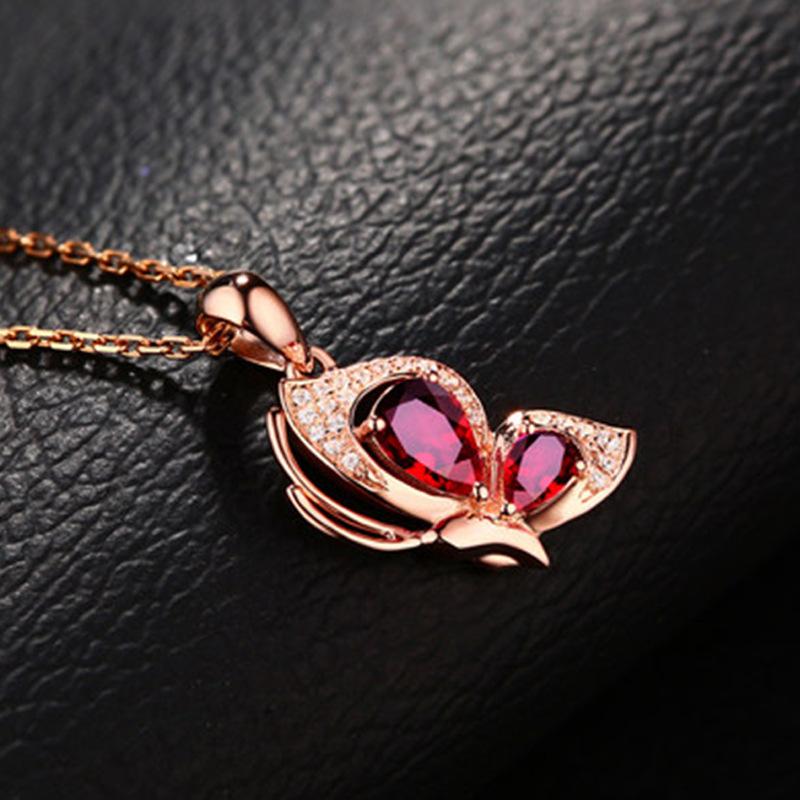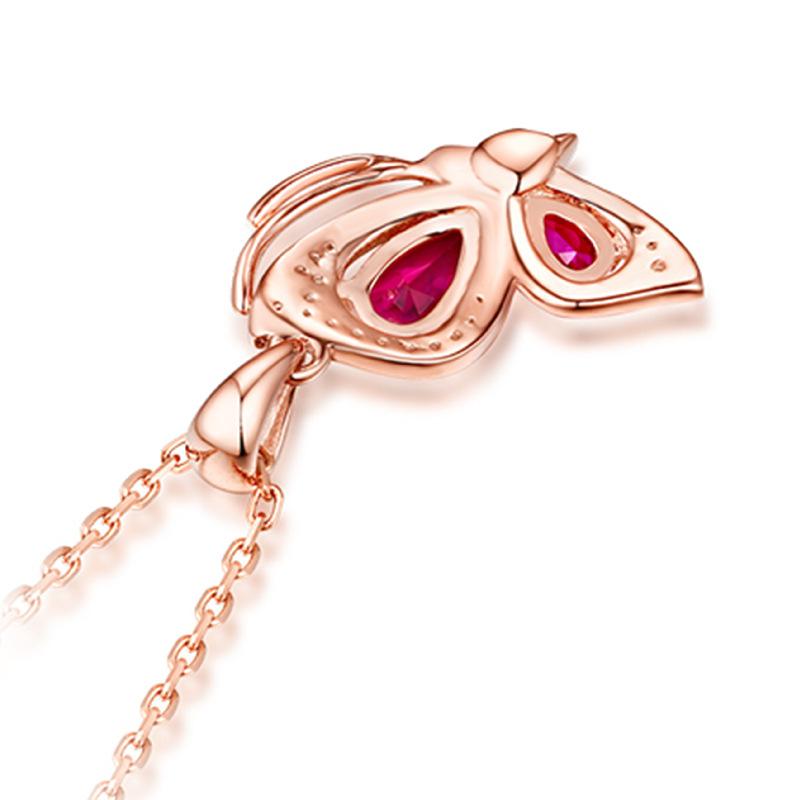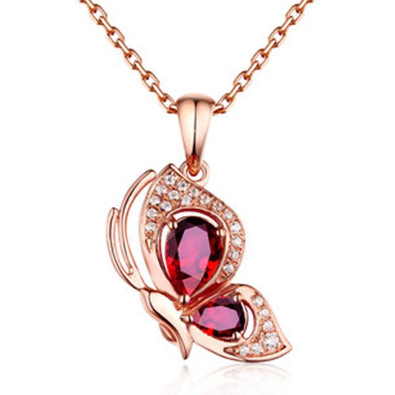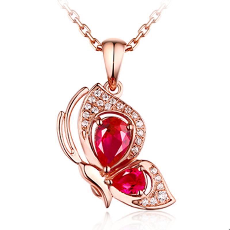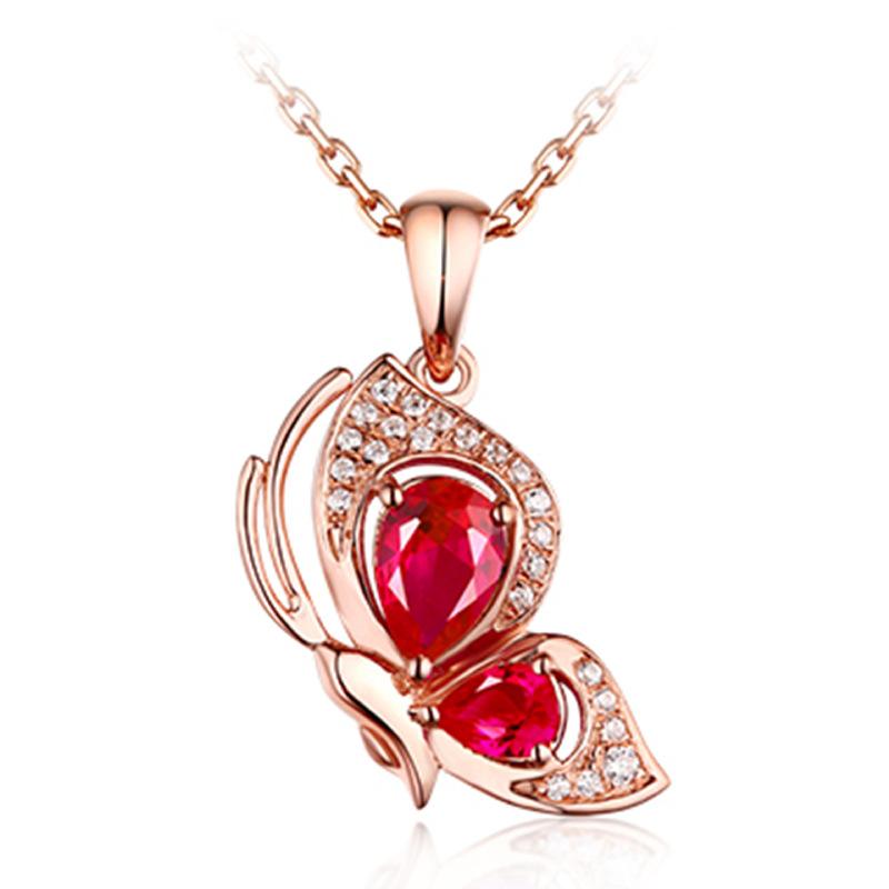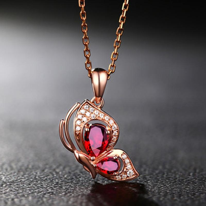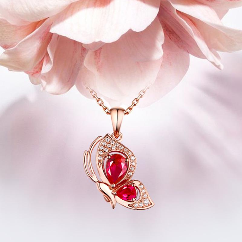 Colgante Elegante de Mariposa con Diamante Rojo Europeo y Americano Chapado en Oro Rosa Gema de Zirconia Colgante Mariposa Danzante