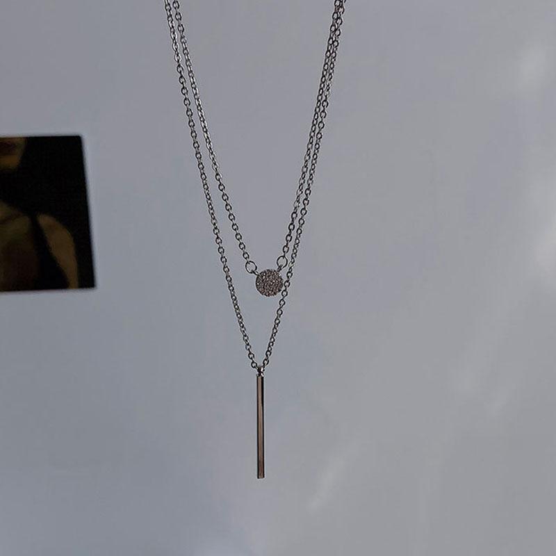 Collar de doble capa para mujer, cadena de clavícula estilo Harajuku, fotografía callejera, collar elegante y a la moda con incrustaciones de diamantes y nicho simple que combina con todo.