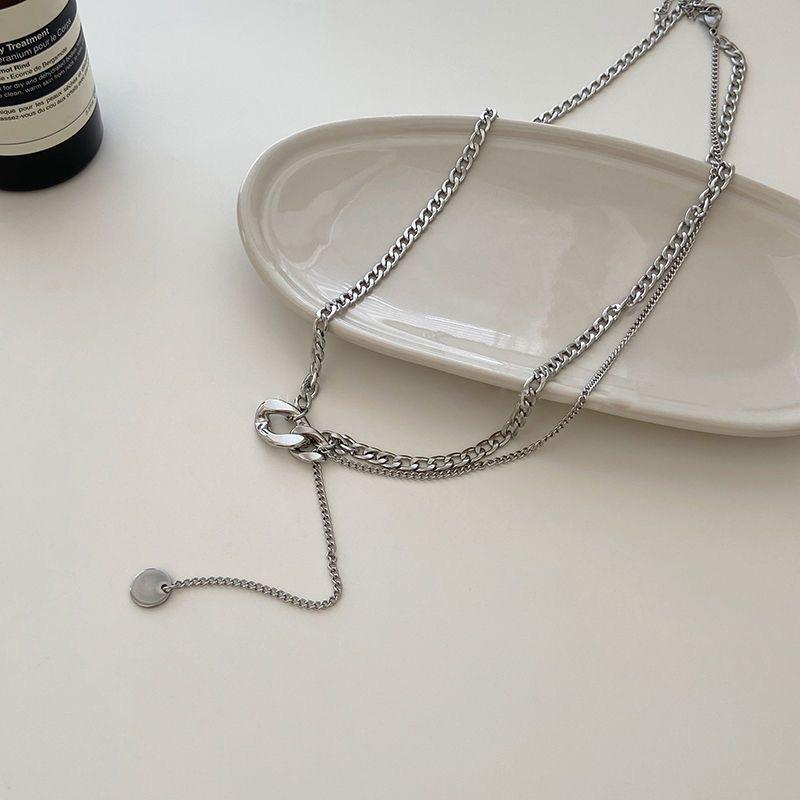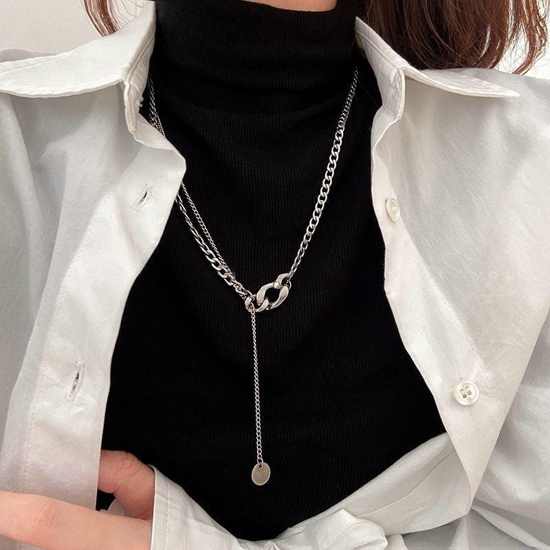 Otoño e Invierno Acero de Titanio Redondo Colgante de Marca Collar para Mujer Estilo Frío Ins Cadena Larga de Lana Hip Hop Moderno Cool Accesorios Combinables