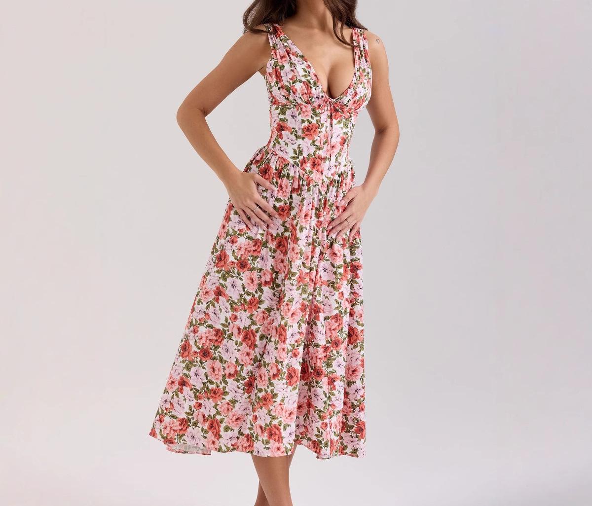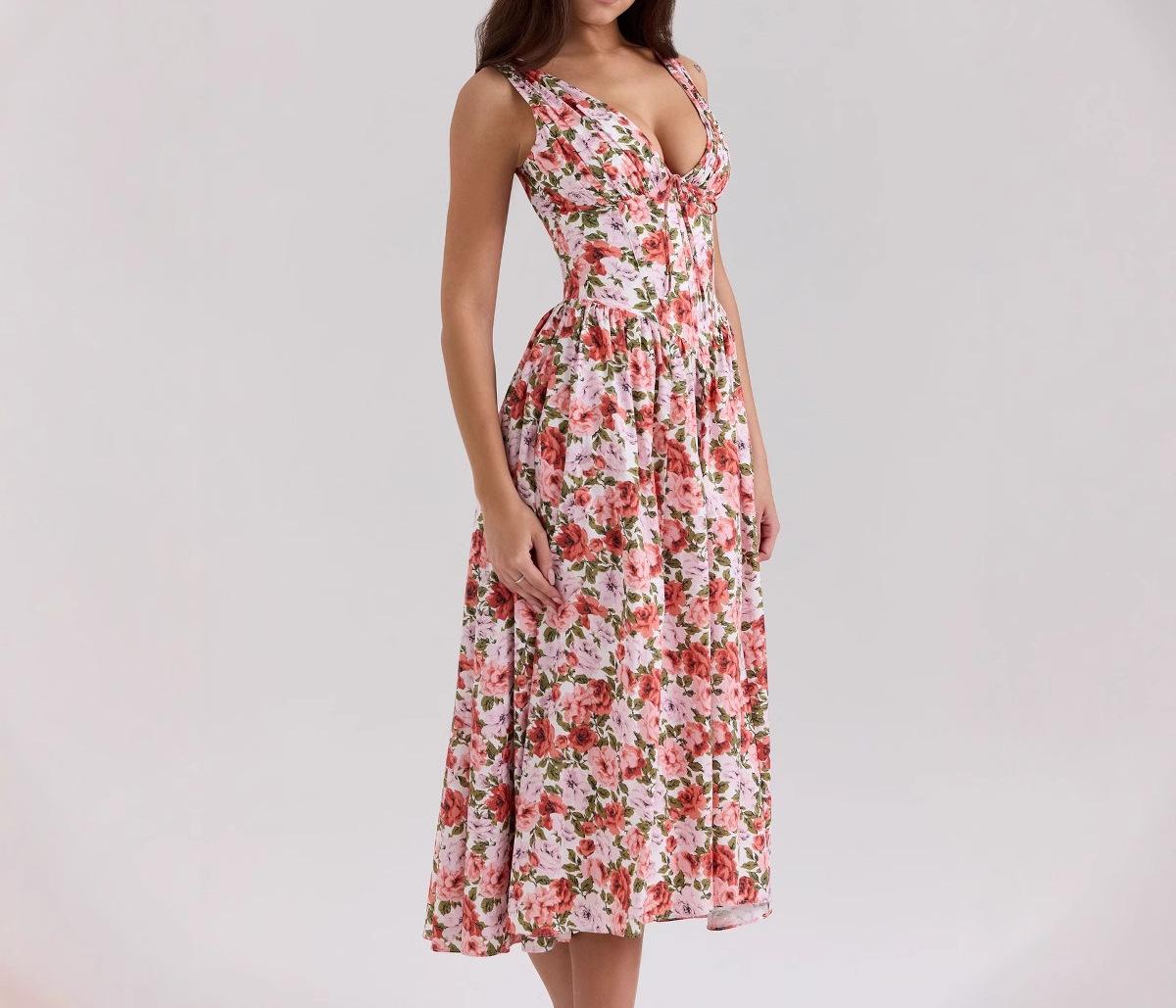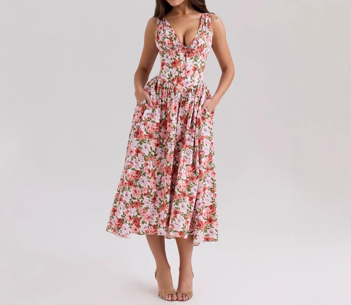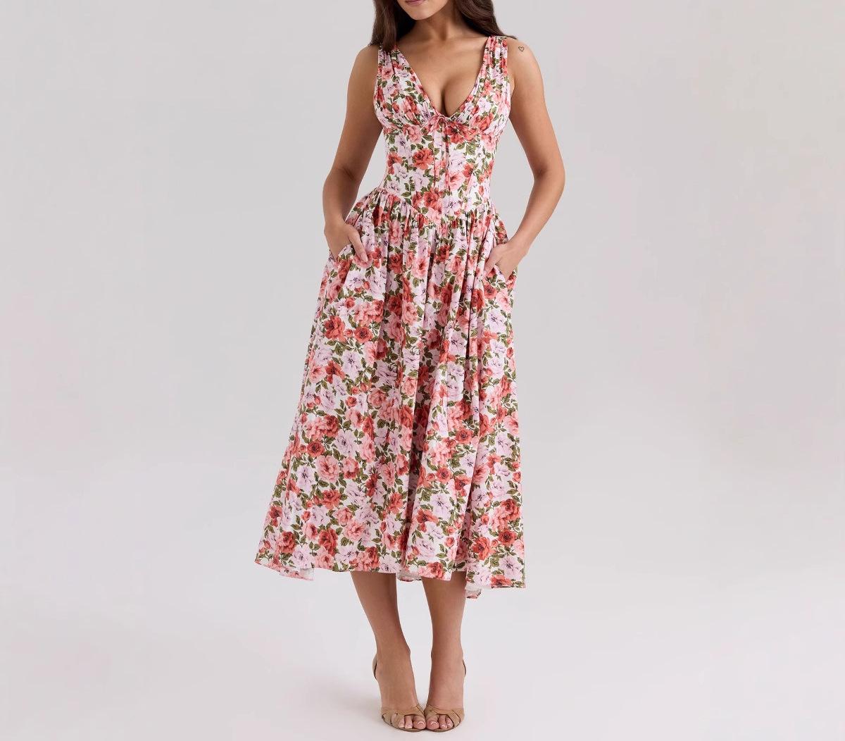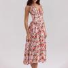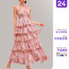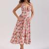 Europa y América 2025 Verano Fresco Cuello en V Fiesta Estampado Sling para Mujer Adelgazante Temperamento Venta al por Mayor Vestido Largo Nuevo