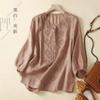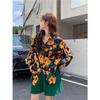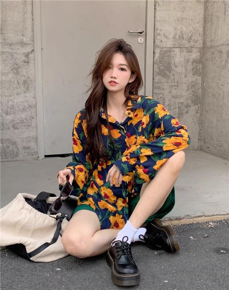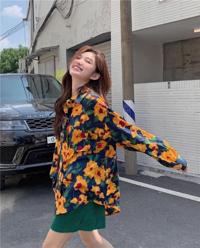 Nueva Camisa de Manga Larga para Primavera y Otoño para Mujer Estilo Hong Kong Retro Holgada Cuello POLO Delgada Estilo Playa Camisa Floral para Mujer Top