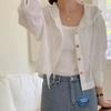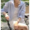 Chic Coreano Verano 2025 Versátil Rayado de Contraste de Un Botón Camisa Holgada de Manga Larga con Capucha para Protección Solar para Mujer