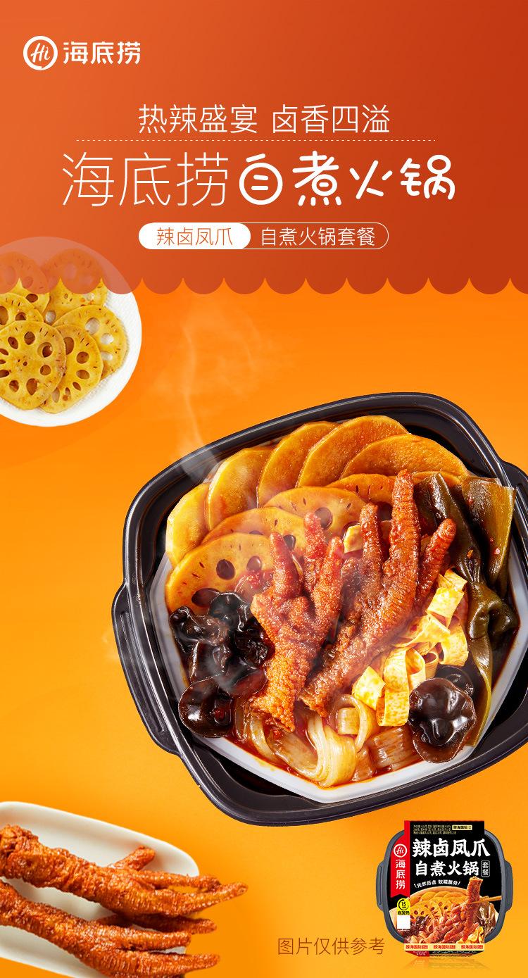 Haidilao Olla Caliente Autocalentable Patas de Pollo Estofadas Picantes 425g Olla Caliente Autococinable Lista para Comer Pequeña Olla Caliente Comida Venta al por Mayor