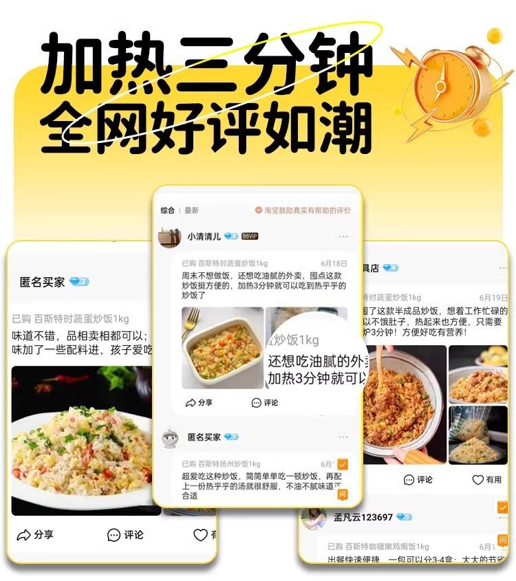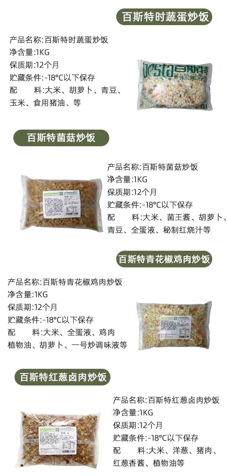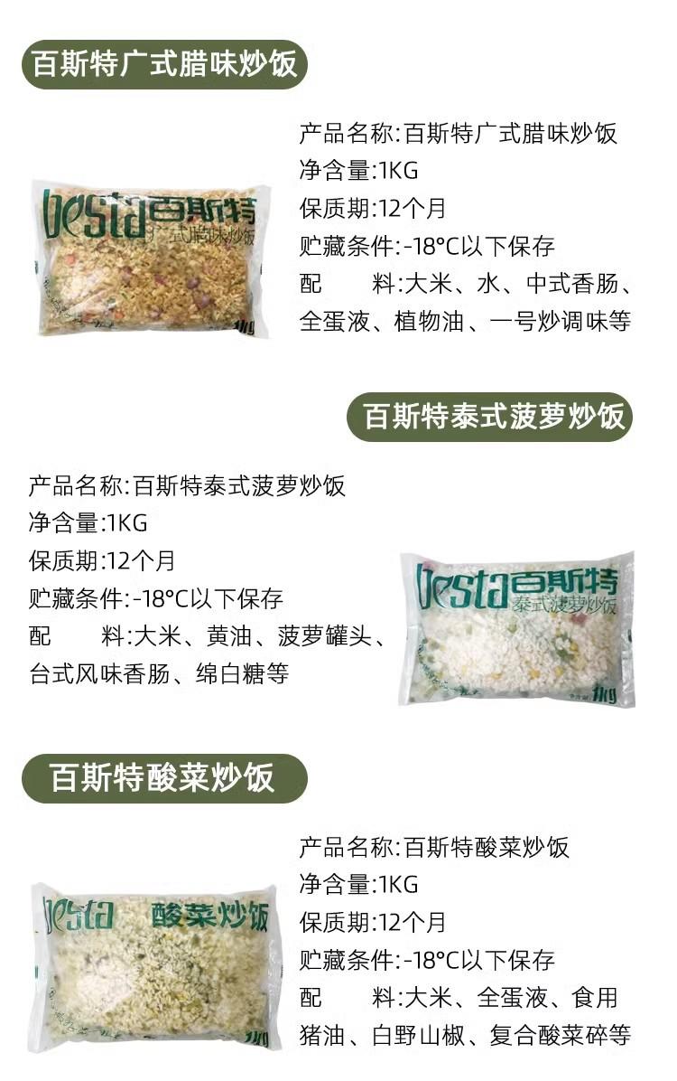 Yangzhou fried rice 1kg*12 packs, Vegetable and egg fried rice 1kg*12 packs, Midawu sauerkraut fried rice 1kg*...