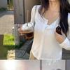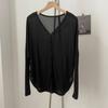 Camiseta de aire acondicionado exterior 2025 top holgado y sencillo de manga larga ligero y versátil~cárdigan de punto con protección solar para mujer