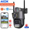 AIOOK Cámara de seguridad para exteriores cámara de doble lente WiFi CCTV IP66 a prueba de agua seguimiento móvil aplicación TUYA intercomunicador bidireccional PTZ