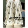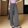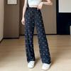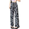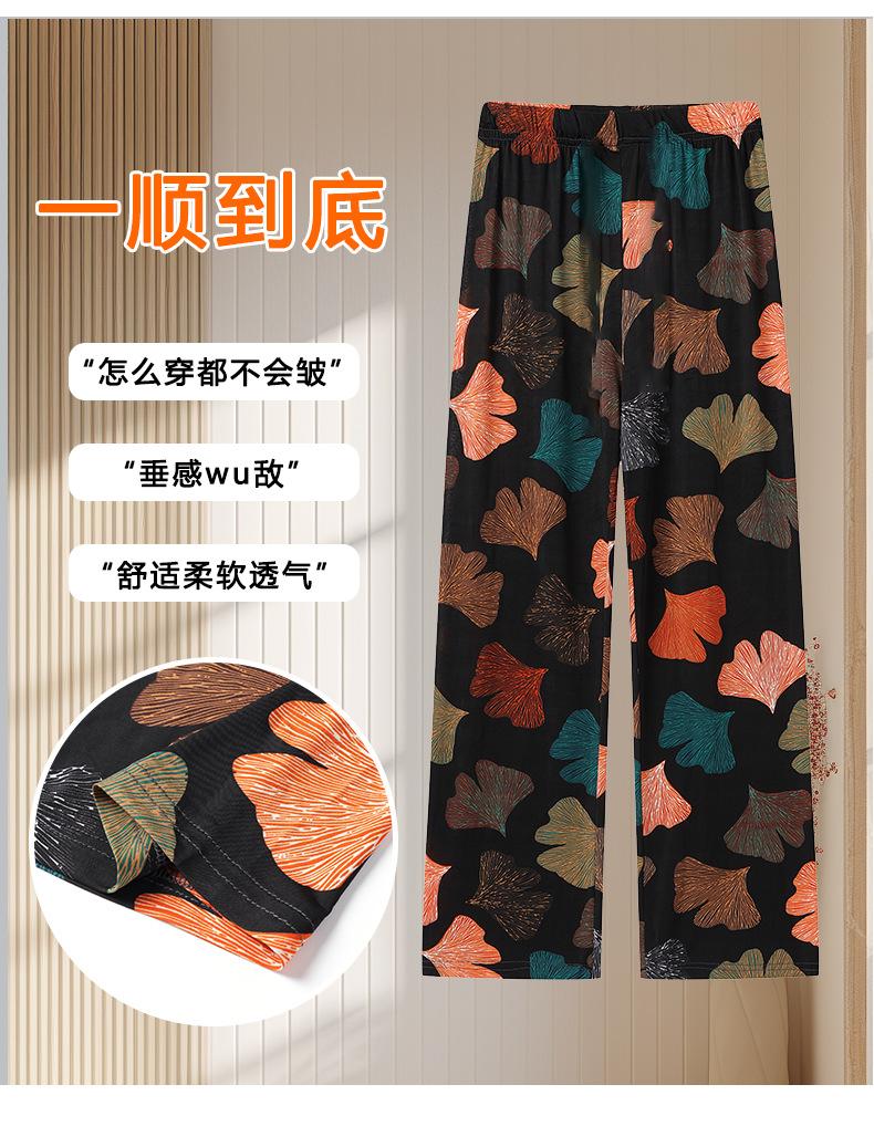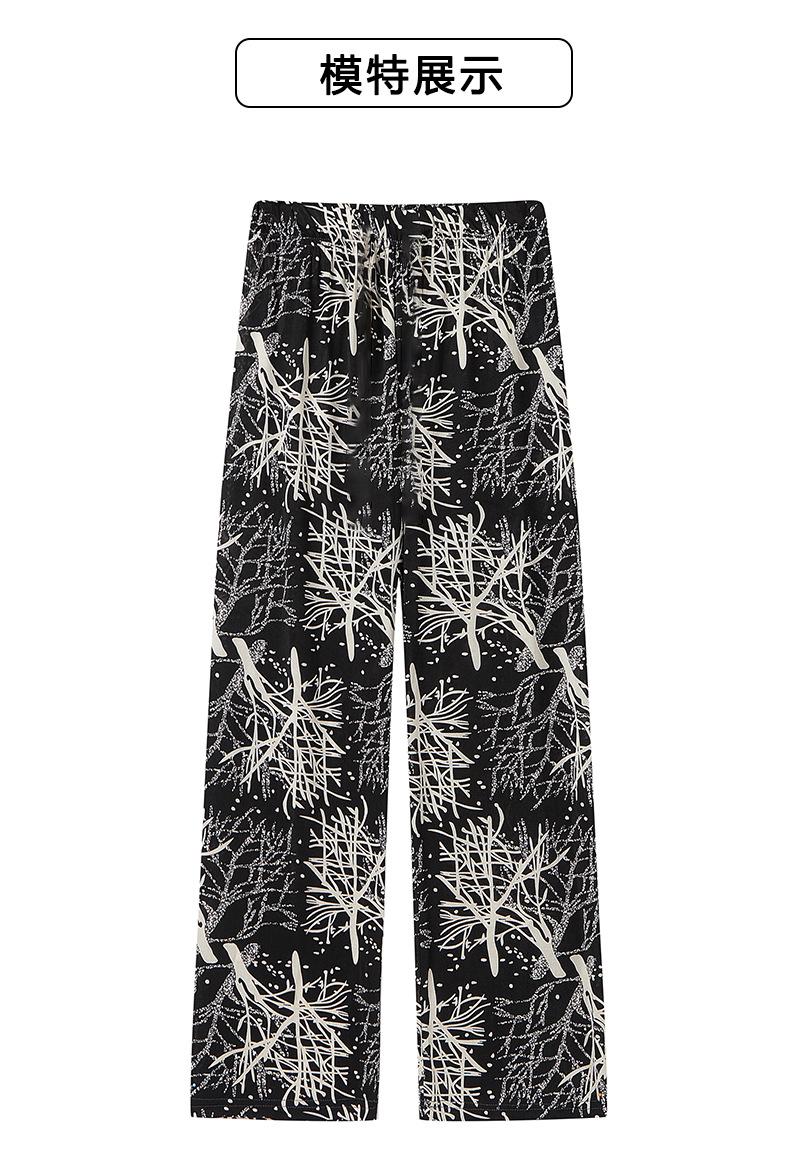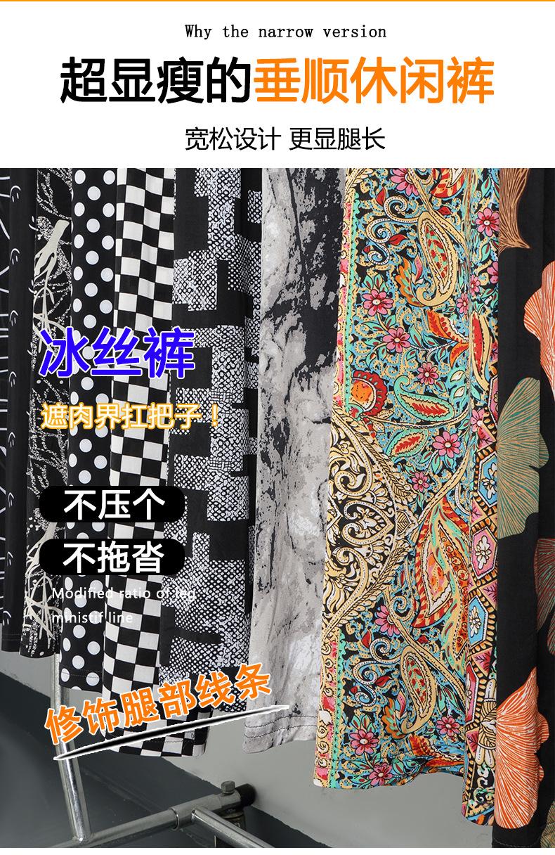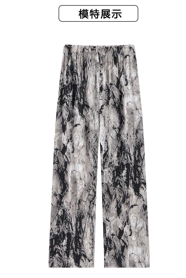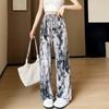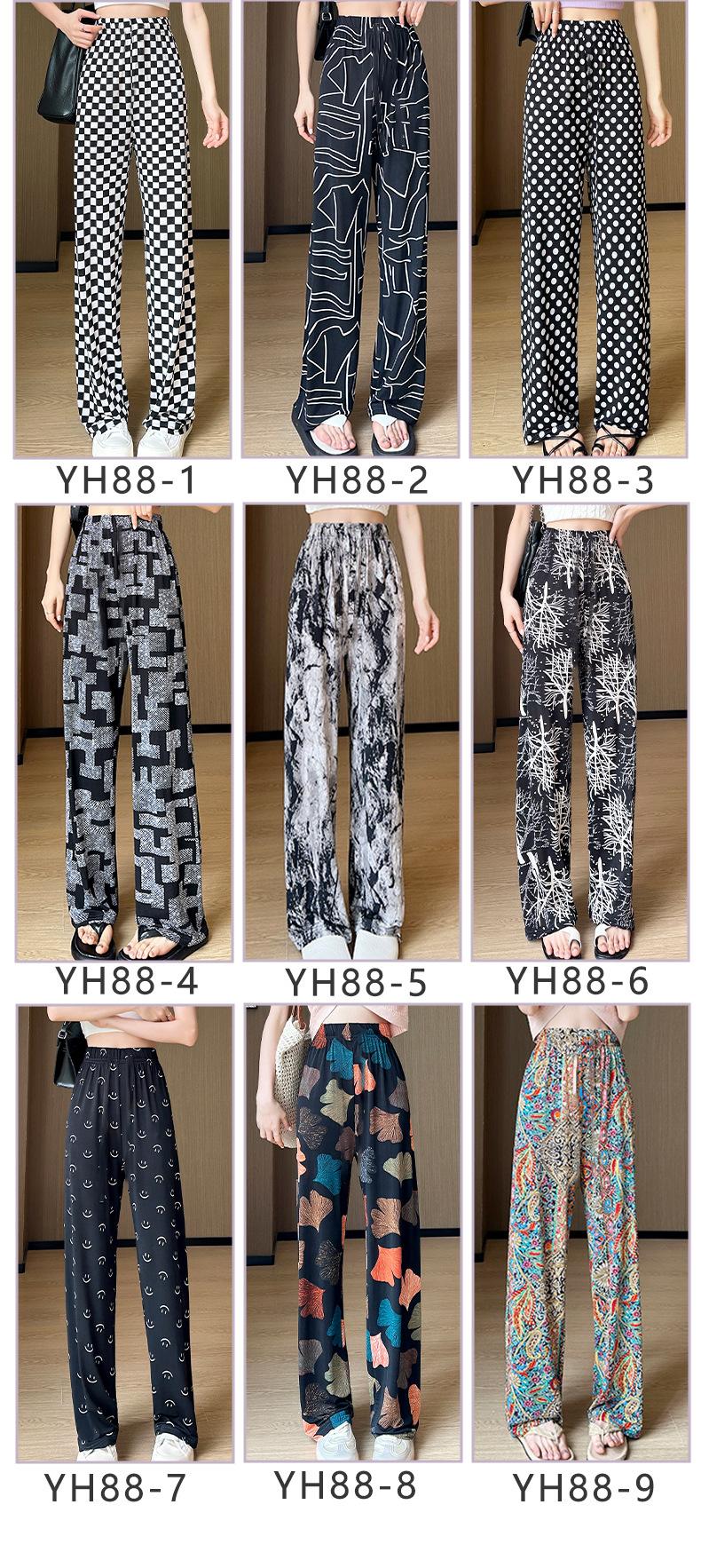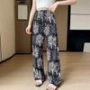 Pantalones nuevos de seda de hielo con sensación fresca estampados de cintura alta y pierna ancha para mujer, verano, delgados, holgados, estilo casual, adelgazantes, de pierna recta, pantalones frescos