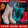 Botas de lluvia largas de moda de tacón bajo para mujer, zapatos de agua de caña alta antideslizantes, botas de lluvia de PVC para mujer para cocina, zapatos de goma suave de caña alta para mujer