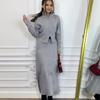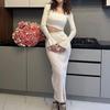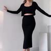 Nuevo Otoño 2023 Europeo y Americano Amazon Transfronterizo Color Puro Estilo Perezoso Ajustado Tejido de Punto Ropa de Punto sobre la Rodilla Falda Larga Traje para Mujer