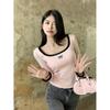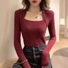 Suéter de cuello cuadrado para mujer, jersey de otoño e invierno 2024, nuevo estilo coreano, top ajustado, tejido, color puro, manga larga, camiseta ajustada de fondo