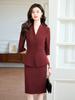 Rojo vino Manga siete cuartos Cuello en V Chaqueta de traje pequeña Pantalones Falda para mujer Primavera Verano Otoño Traje de dos piezas 25 Años Nuevo