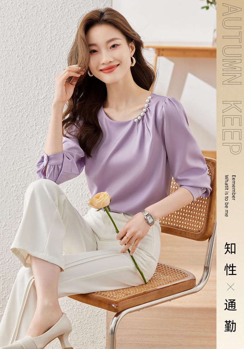 Camisa Morada Única y Chic de Manga Larga Camisa de Mujer Primavera y Otoño 2025 Nueva Nicho Versátil Ropa de Trabajo Tendencia Superior