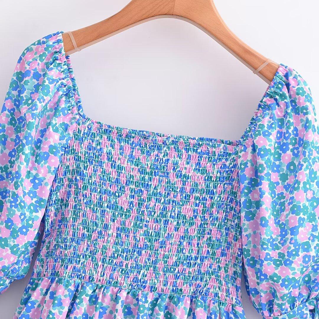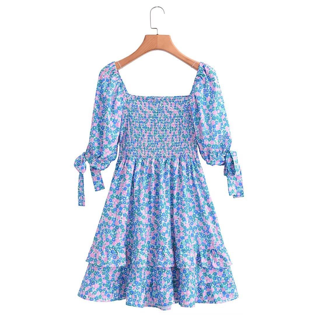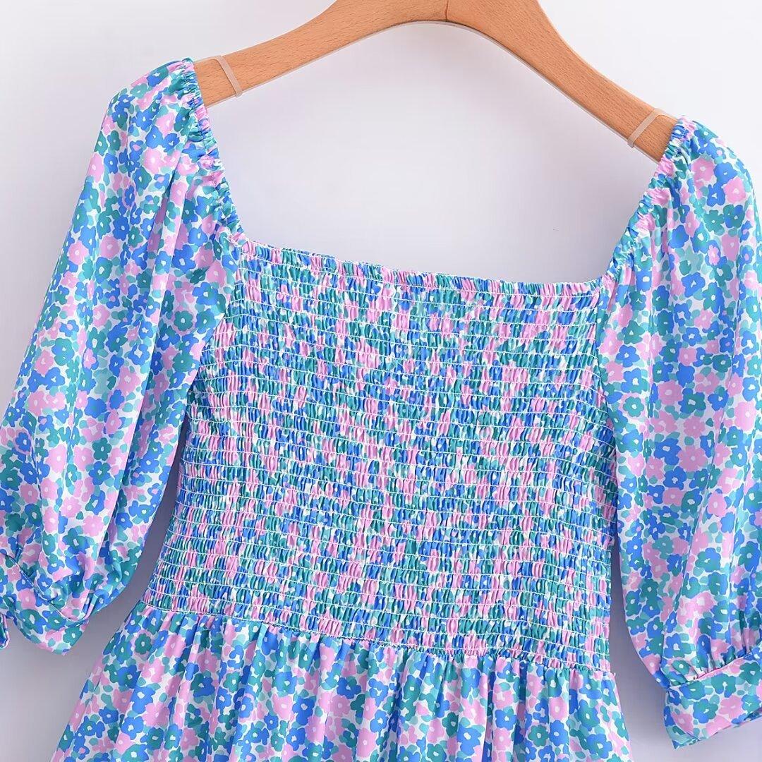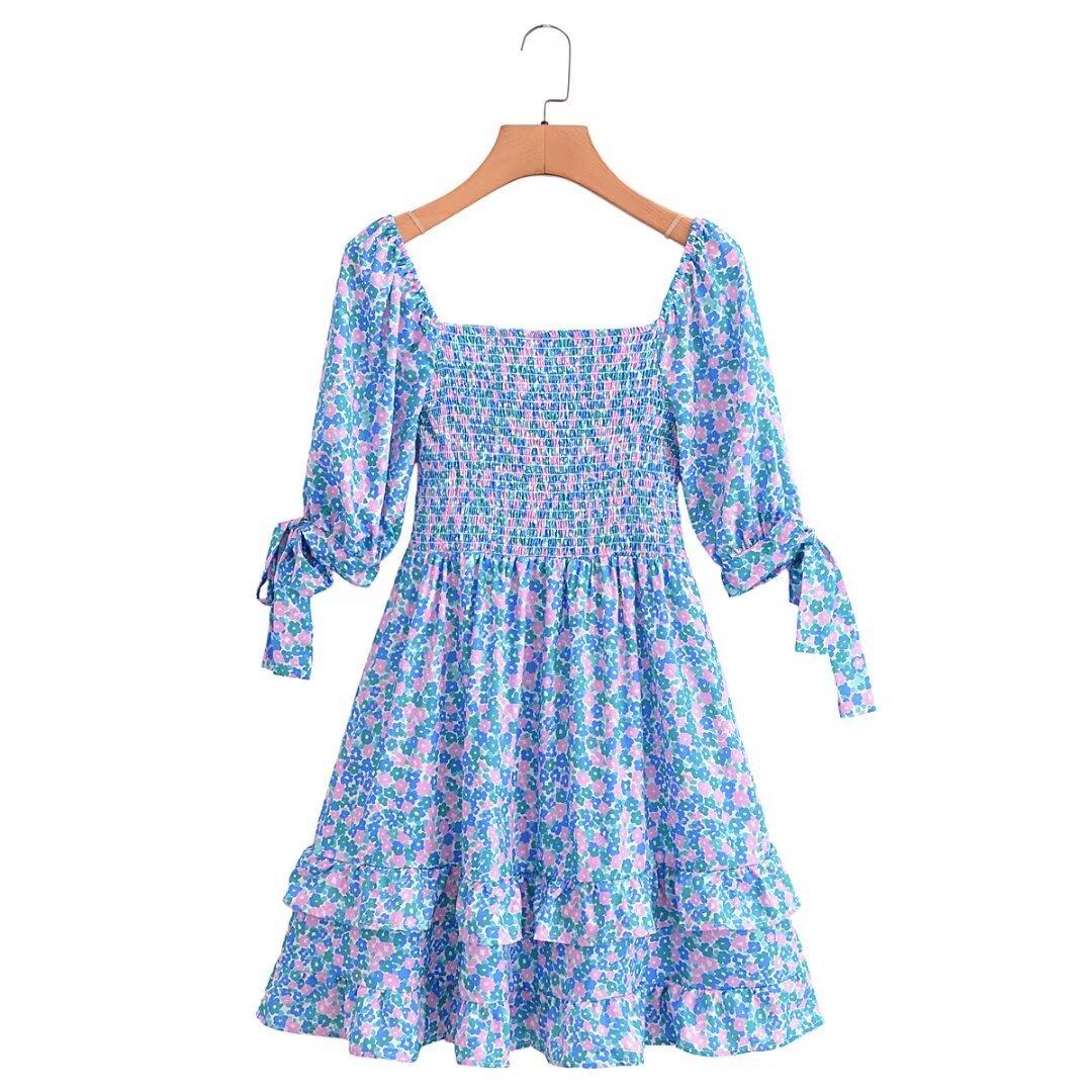 Vestido al por mayor para mujer primavera 2024 nuevo estilo europeo y americano floral cuello cuadrado manga corta