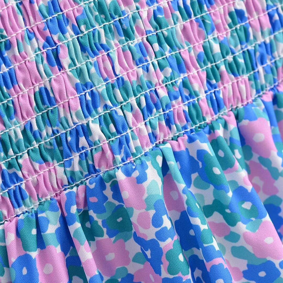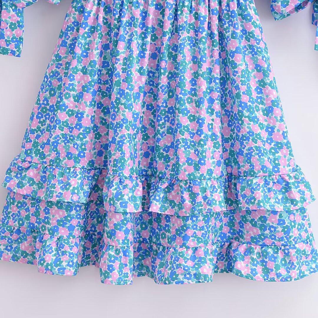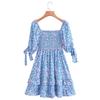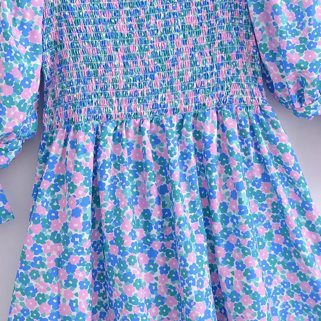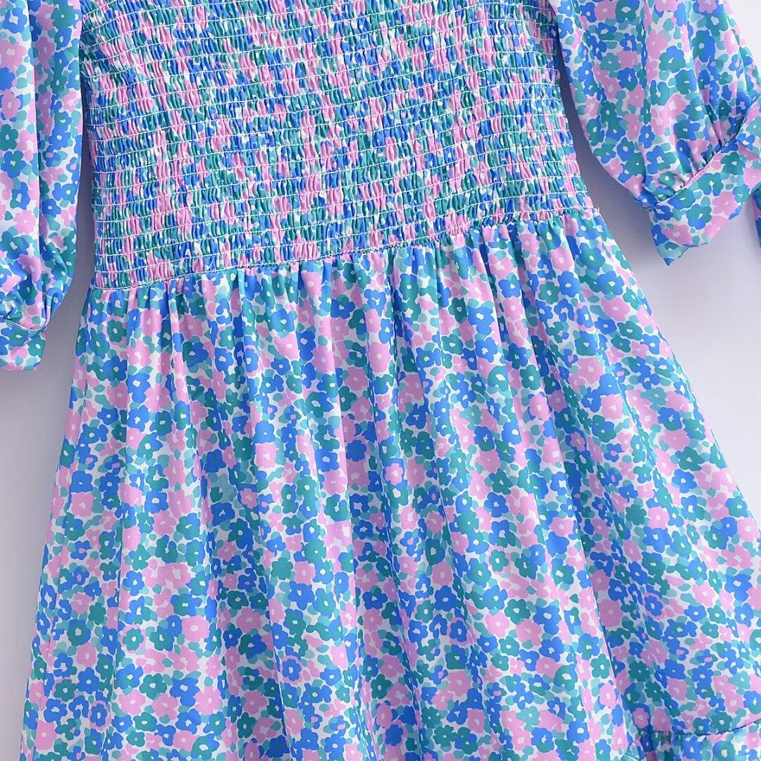 Vestido al por mayor para mujer primavera 2024 nuevo estilo europeo y americano floral cuello cuadrado manga corta