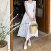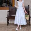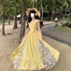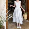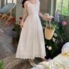Verano Nuevo Vestido Chaleco Falda Larga Blanca con Volantes Francés Suave Vacaciones Vestido Blanco Bordado para Mujer