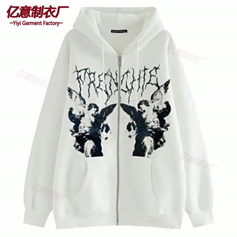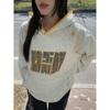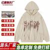 Sudadera con Capucha de Algodón Puro de Peso Pesado Transfronteriza para Mujer, Top Casual Holgado, Camiseta Cultural Estampada Forrada de Felpa Moderna para Otoño e Invierno Procesamiento