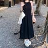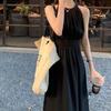 2025 Vestido Elegante Largo con Hombros Descubiertos para Vacaciones, Adelgazante de Cintura, Fresco Halter de Cuello Alto, Sin Mangas, con Tirantes para Mujer