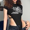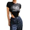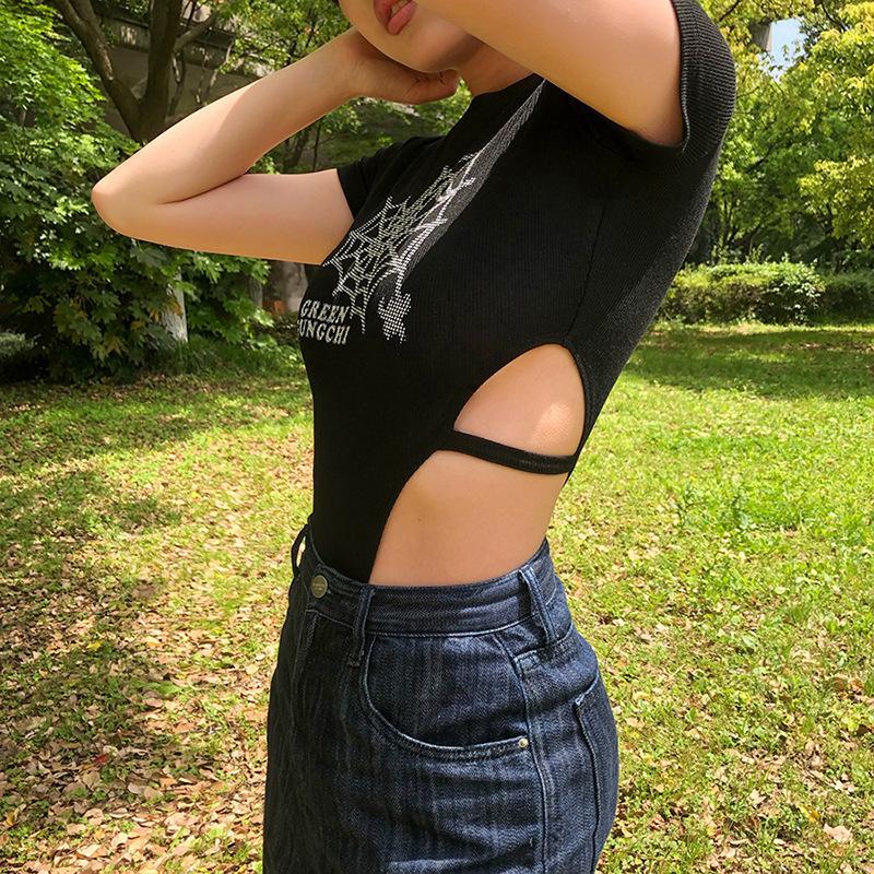 2025 Verano Nuevo Top de Color Sólido Ajustado para Chica Hot Oscura Moda Sexy Estampado de Personalidad Cuello Redondo Body Mujer