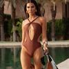 Verano 2025 Nuevo Body Sexy Ajustado de Color Sólido con Cordones para Mujer, Mono Hueco sin Espalda para Mujer