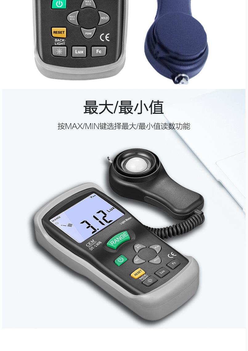 CEM DT-1309 Medidor de Iluminancia Profesional Fotómetro de Alta Precisión 1308 Detector de Brillo de Mano