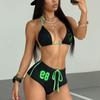 INS Estilo Deportivo Callejero Transfronterizo Europeo y Americano Falso de Dos Piezas Sling Descubierto Pantalones de Tres Puntos Conjunto de Fitness para Chica Hot Verano