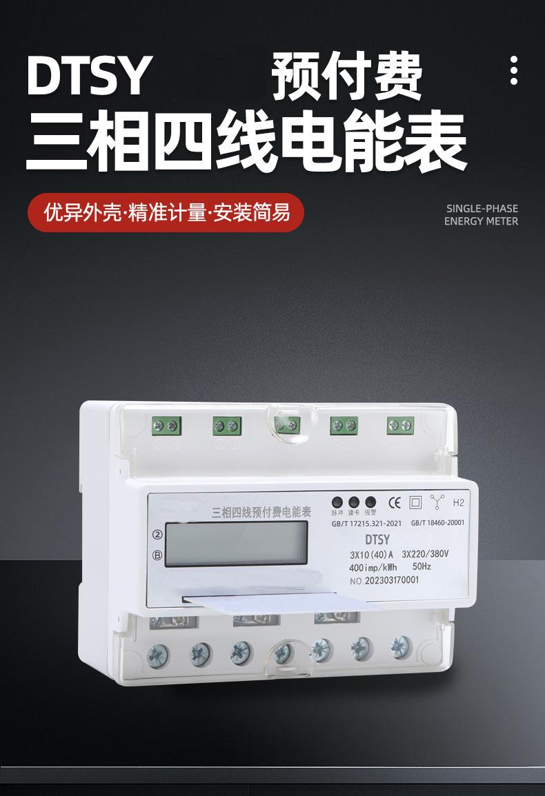 Medidor de Tarjeta Inteligente para Riel DIN de 380V Recargable Trifásico Cuatro Hilos Medidor de Energía Tarjeta IC Prepago Medidor de Kilovatios-Hora