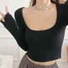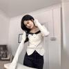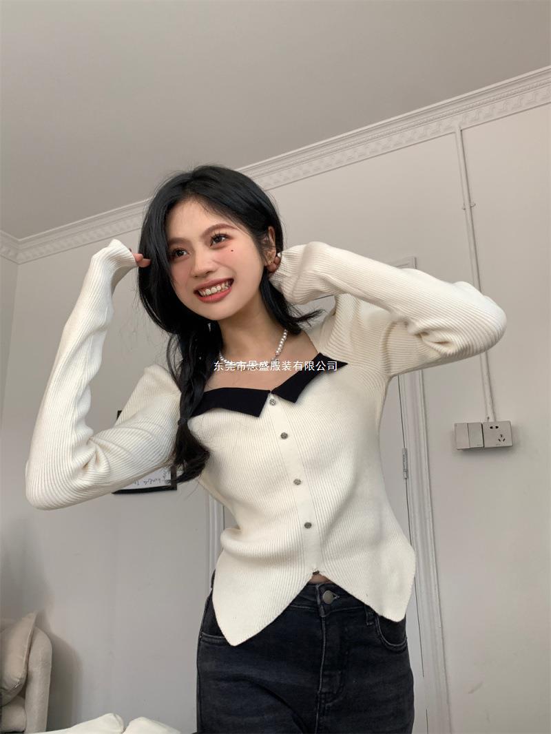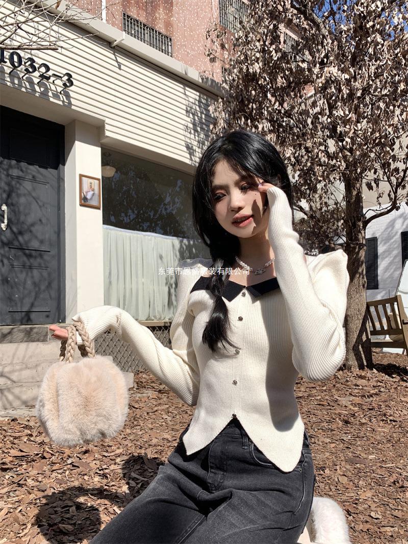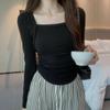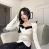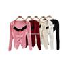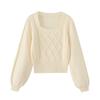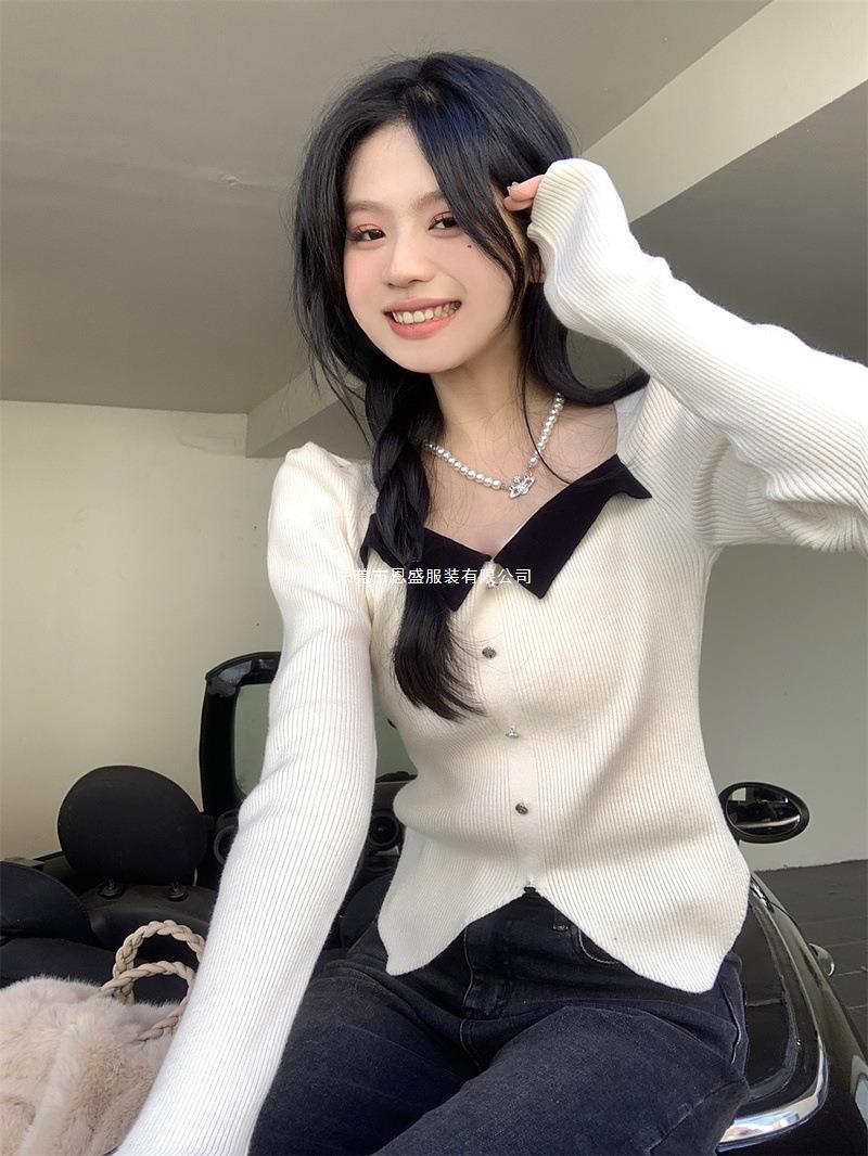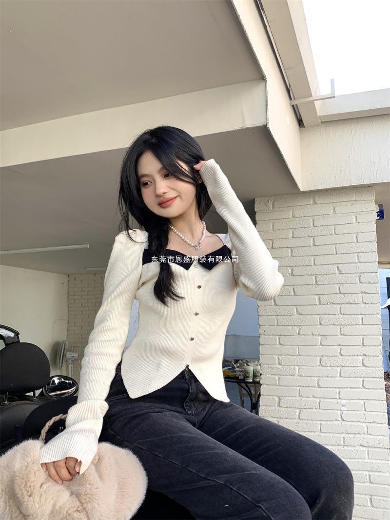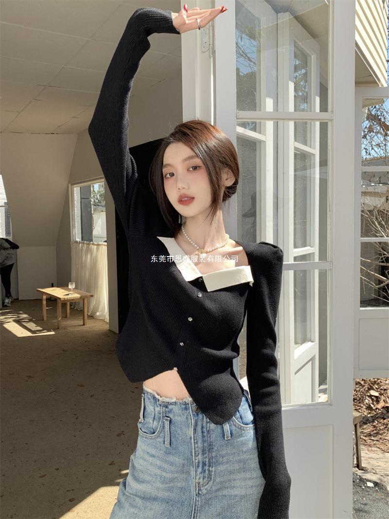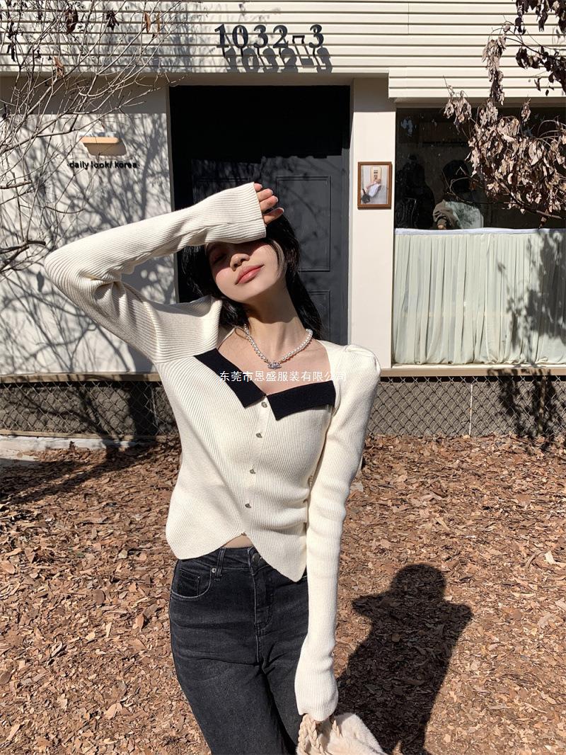 Suéter de Cuello Cuadrado Otoño 2024 Nuevo Diseño Popular de Nicho con Estilo Occidental Falso de Dos Piezas Top de Manga Abullonada para Mujer