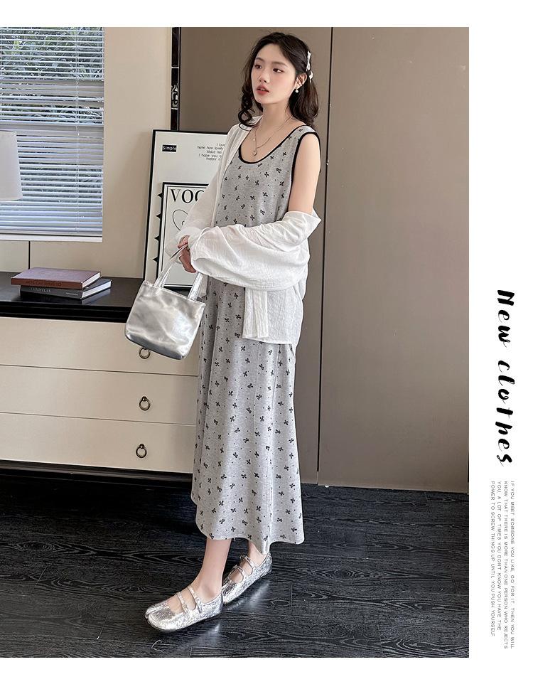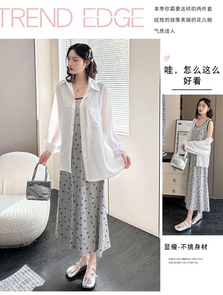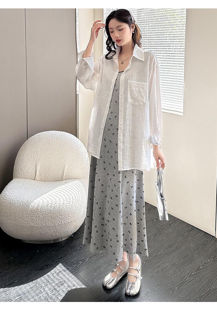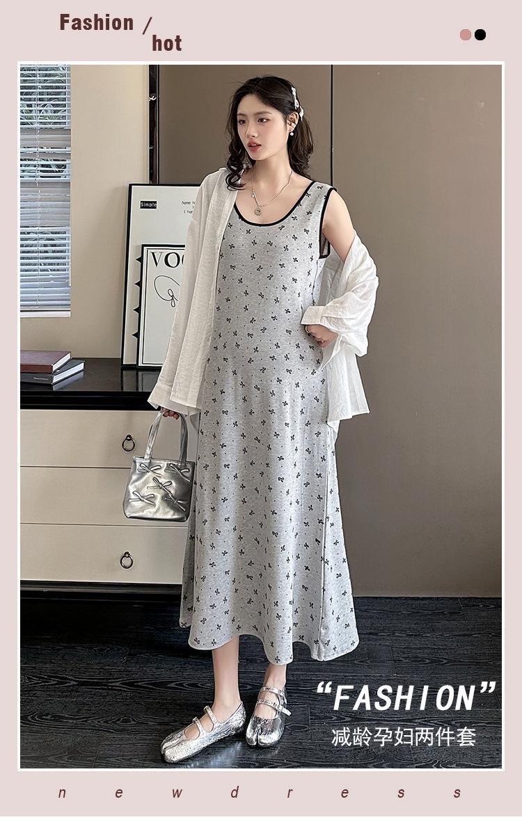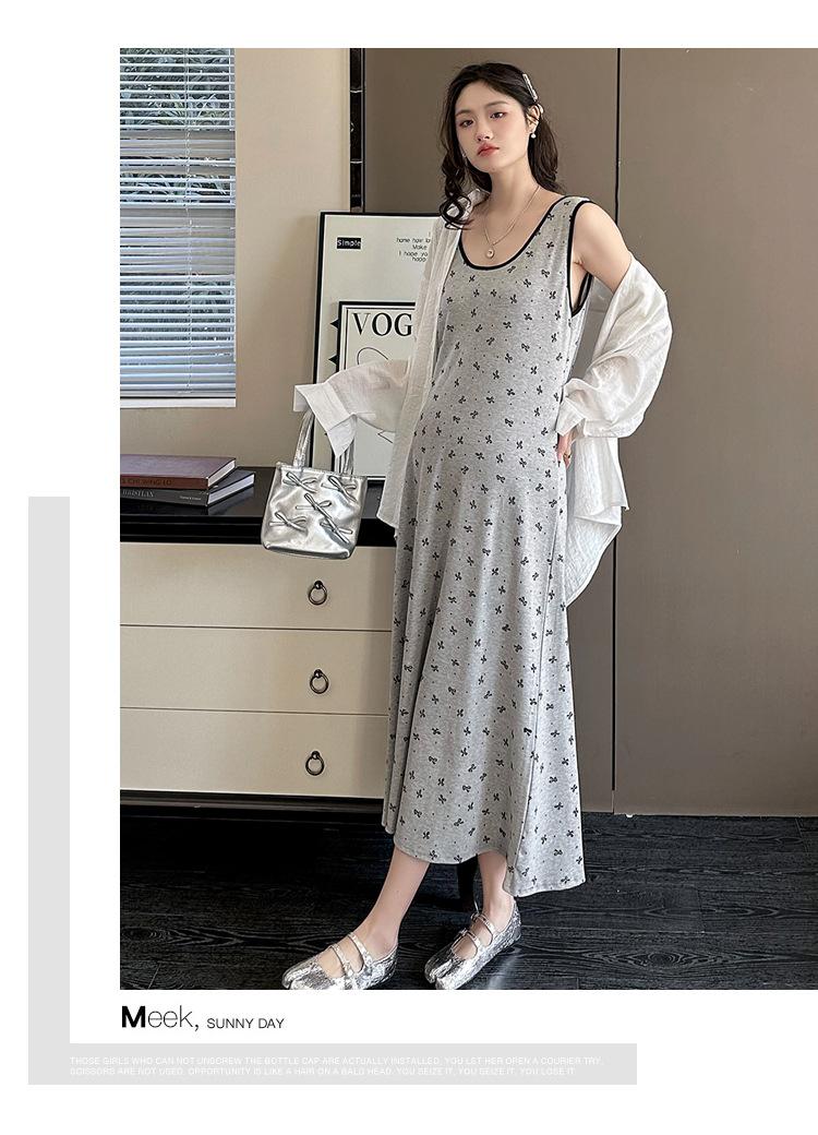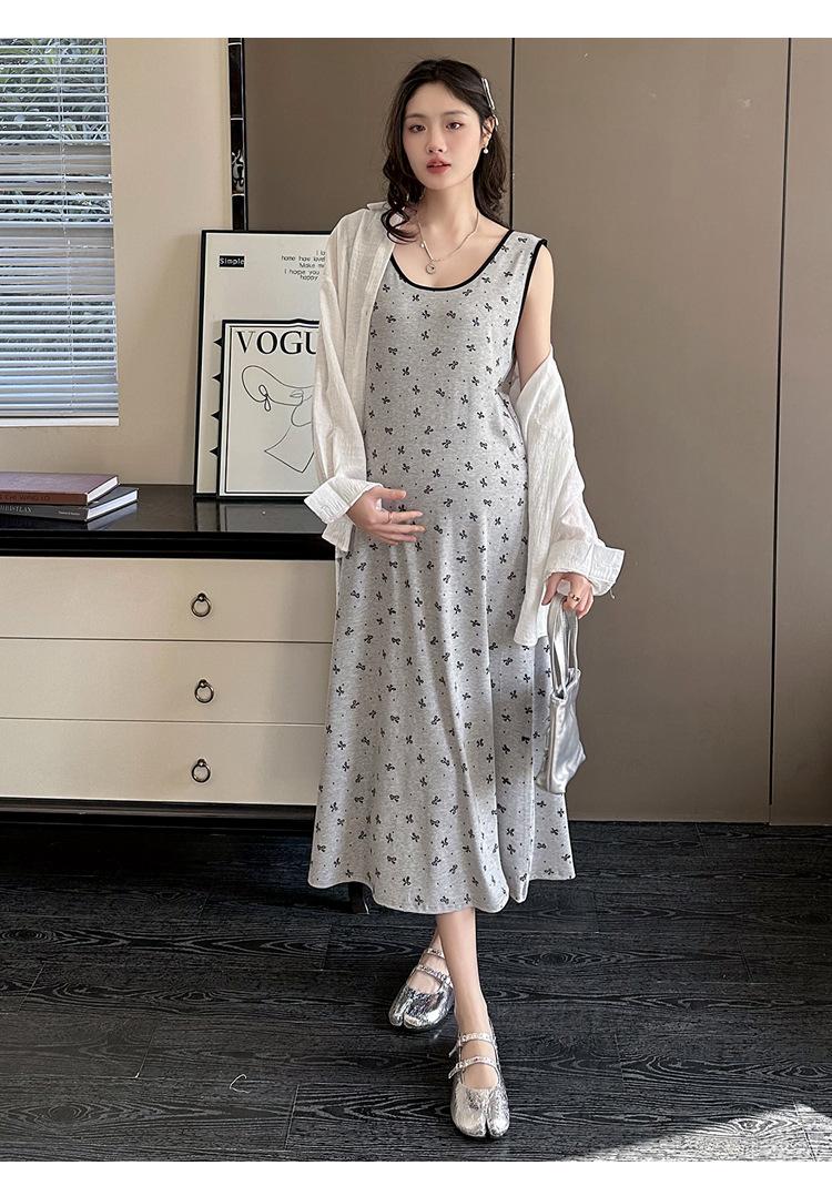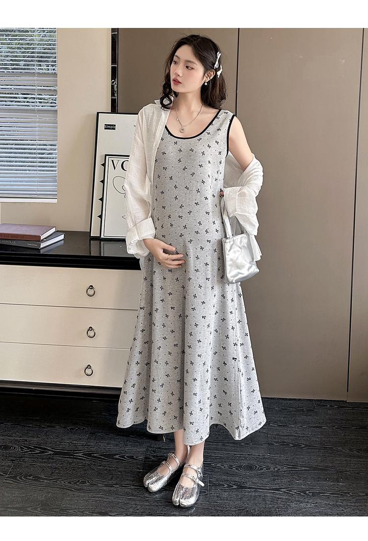 Vestido de Maternidad 2025 Ropa de Otoño Suelto Cubre Vientre Estampado de Mariposas a la Moda Vestido Chaleco de Maternidad