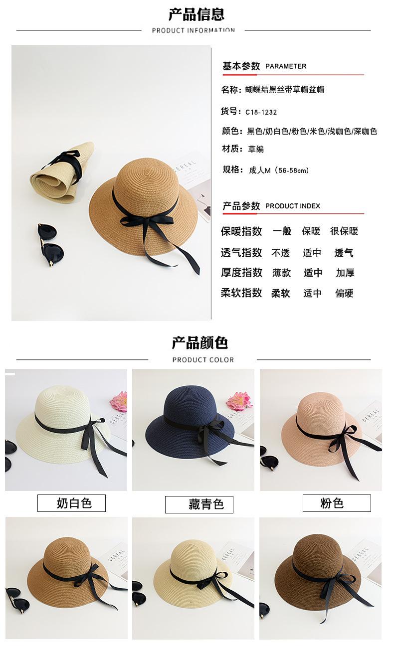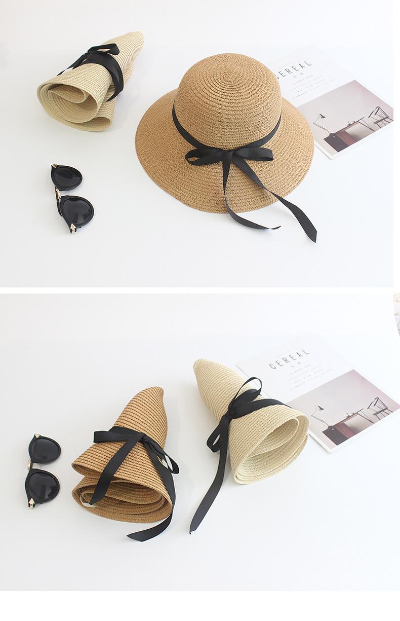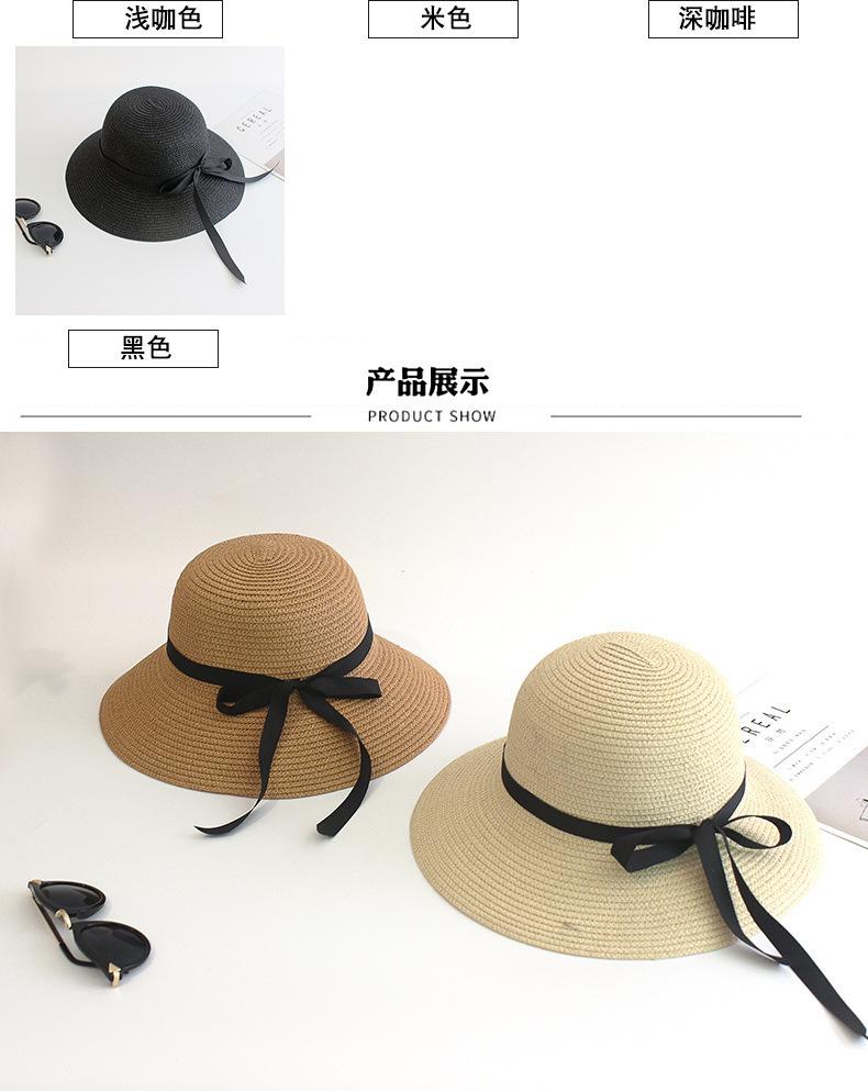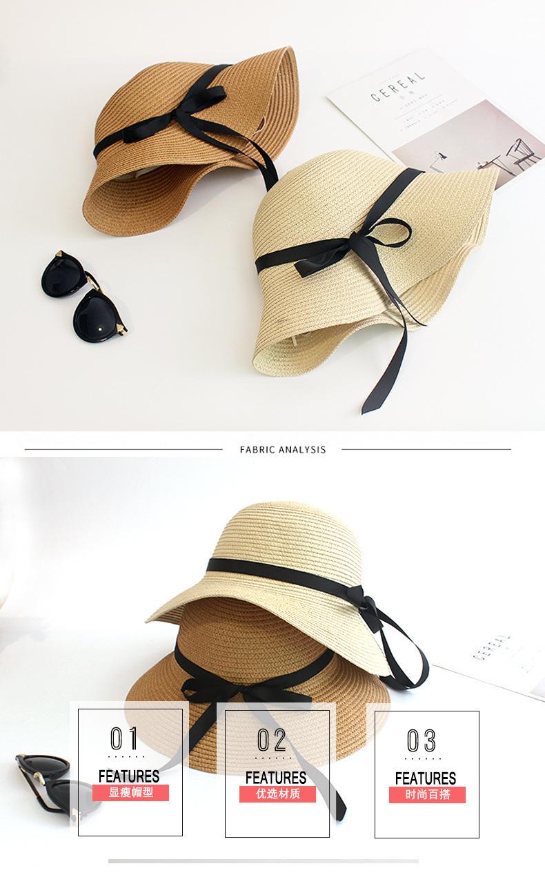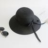 Sombrero de Sol de Verano para Mujer Lazo de Cinta Negra Sombrero de Ala Ancha Estilo Japonés Sombrero de Cubo para Adulto Protección Solar para Mujer Sombrero de Sol Plegable