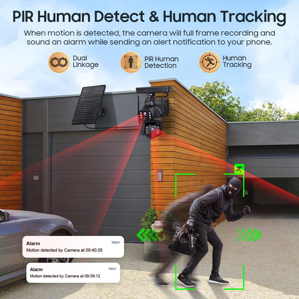 Cámara Solar SECTEC 3K 6MP AOV de Lente Dual con Vista Dual 4G Detección Humana Dual PIR Alarma PTZ de Seguridad Grabación 24/7 Cámara Cctv