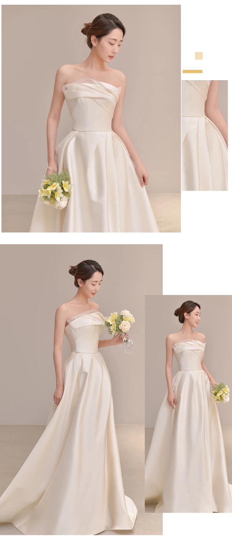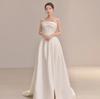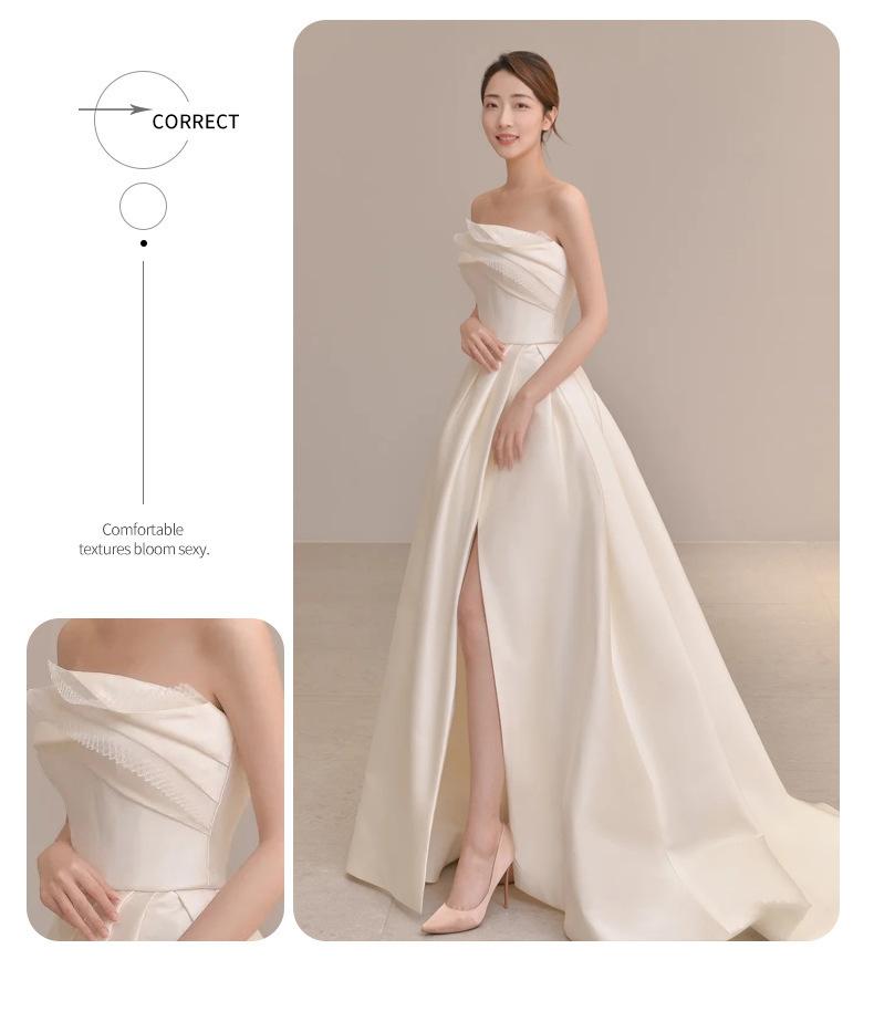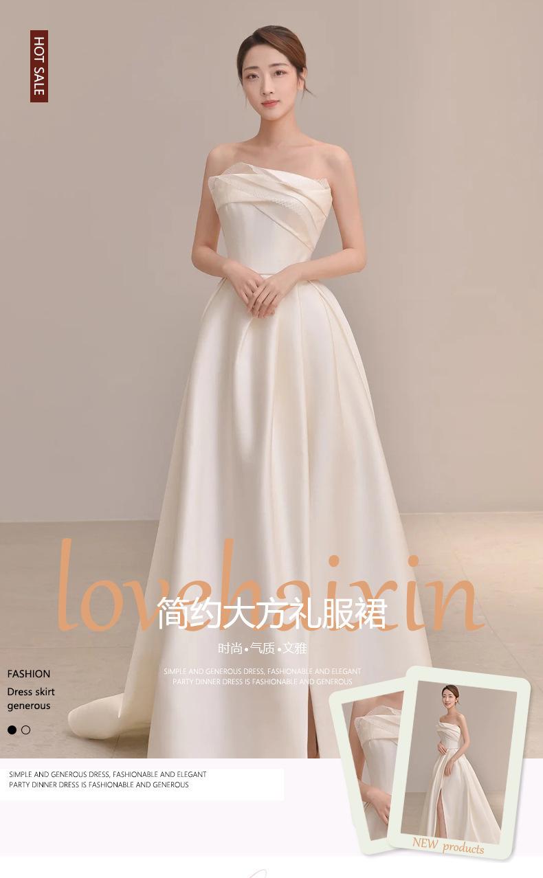 Vestido de Novia Ligero Francés 2025 Nuevo Vestido de Novia Tubo Superior Sencillo de Satén Alta Calidad Largo hasta el Piso Vestido de Boda de Verano