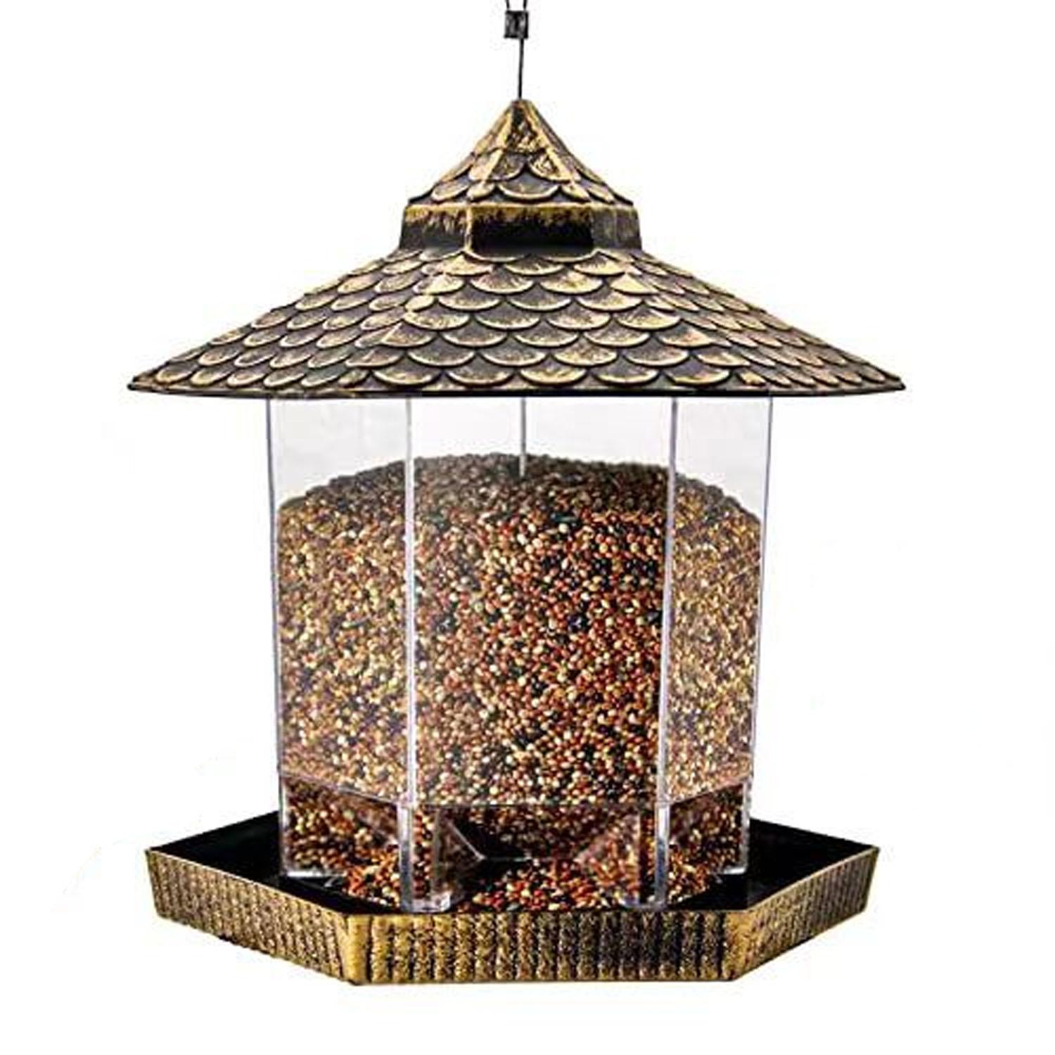 El techo inclinado + el cuerpo sellado del almacén también pueden bloquear el 90% de la lluvia en días de tormenta para evitar que la comida para pájaros se enmohezca y se apelmace; Los materiales de protección solar evitan que la luz solar directa cause que el aceite se eche a perder, asegurando comida segura para las aves y reduciendo la molestia de los cambios frecuentes de comida.