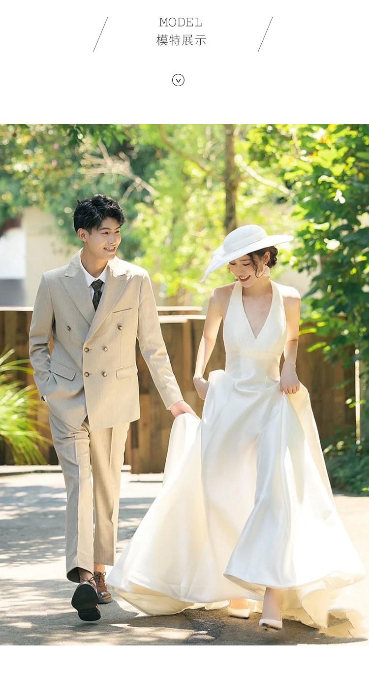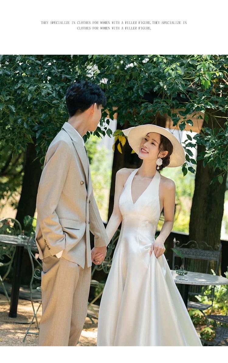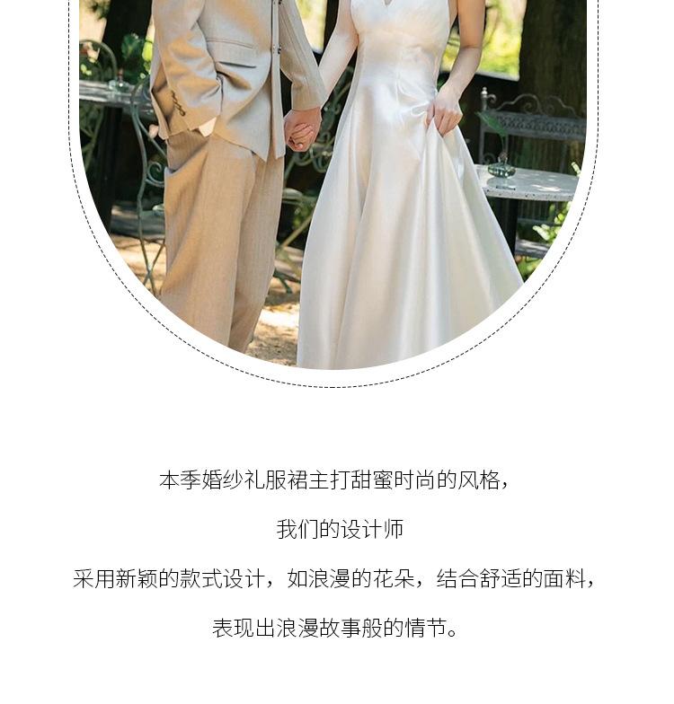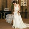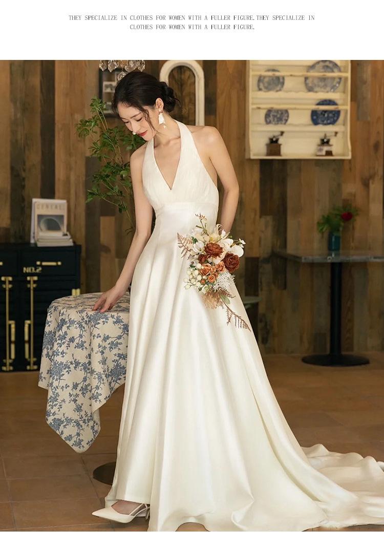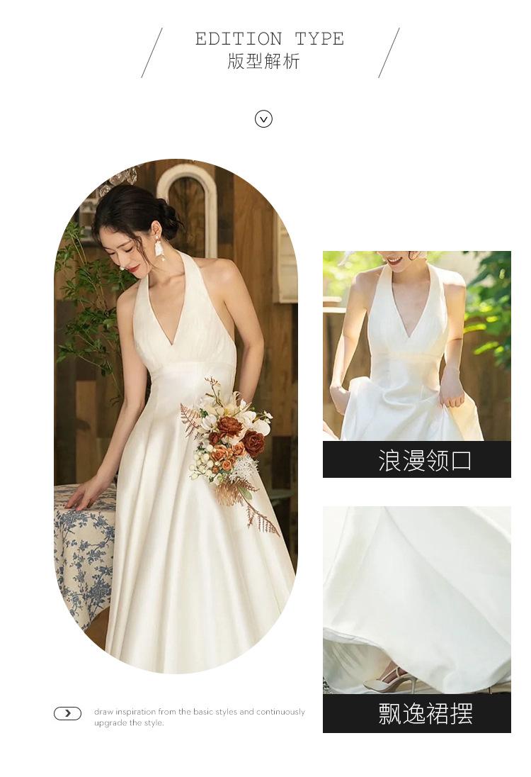 Vestido de novia ligero estilo francés novia elegante simple cuello en V estilo Hepburn satén hilo de bienvenida vestido de bienvenida venta al por mayor