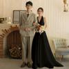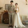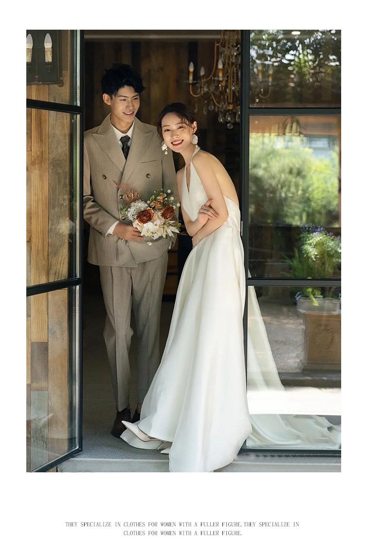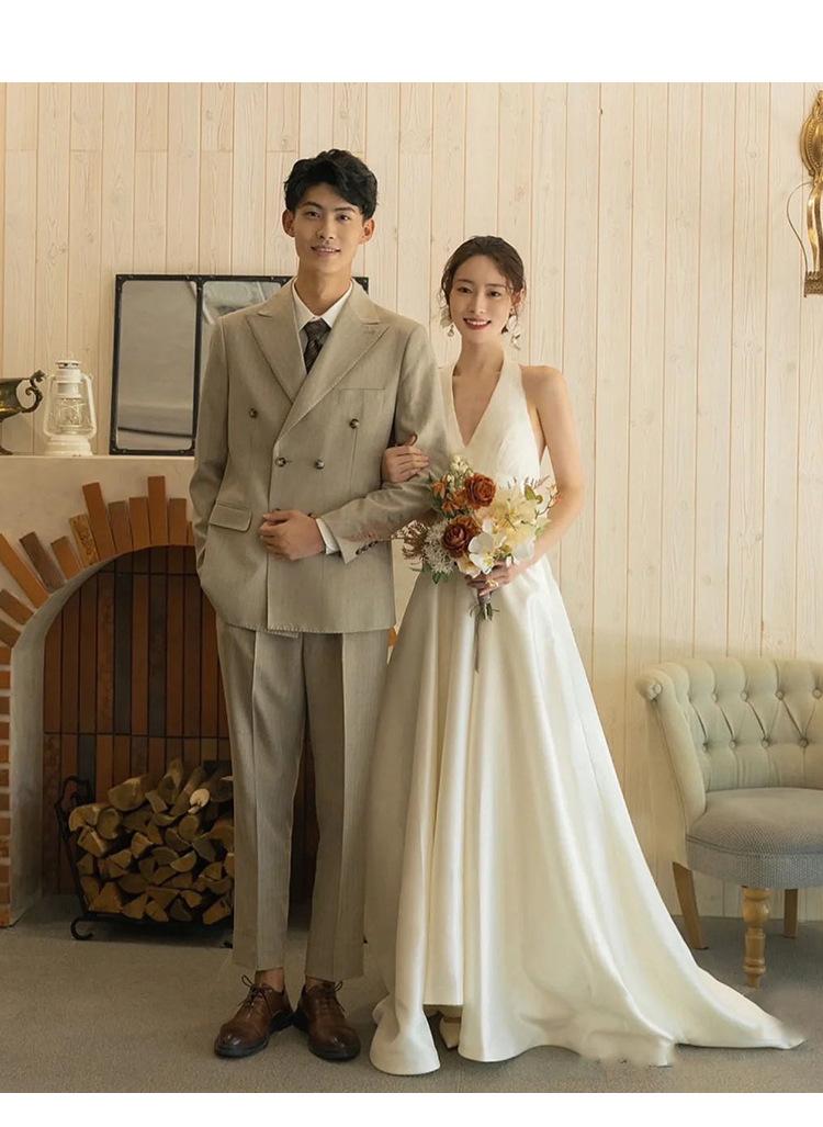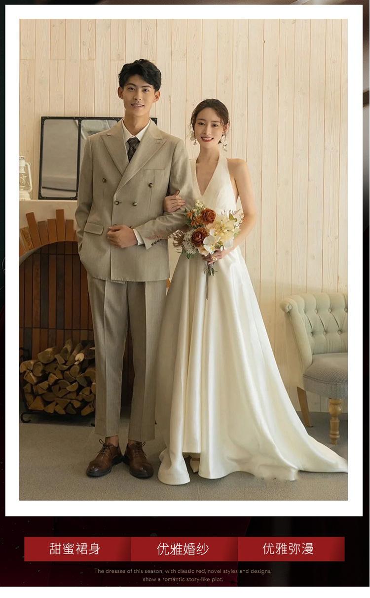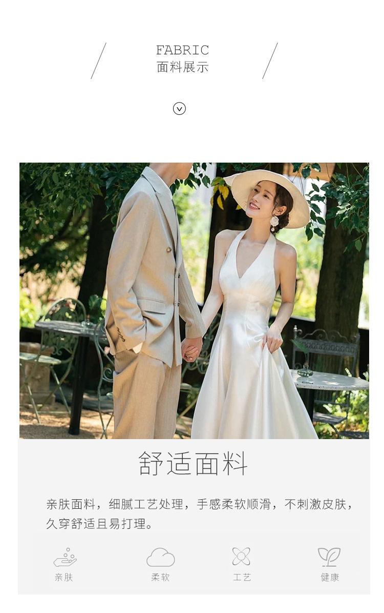 Vestido de novia ligero estilo francés novia elegante simple cuello en V estilo Hepburn satén hilo de bienvenida vestido de bienvenida venta al por mayor