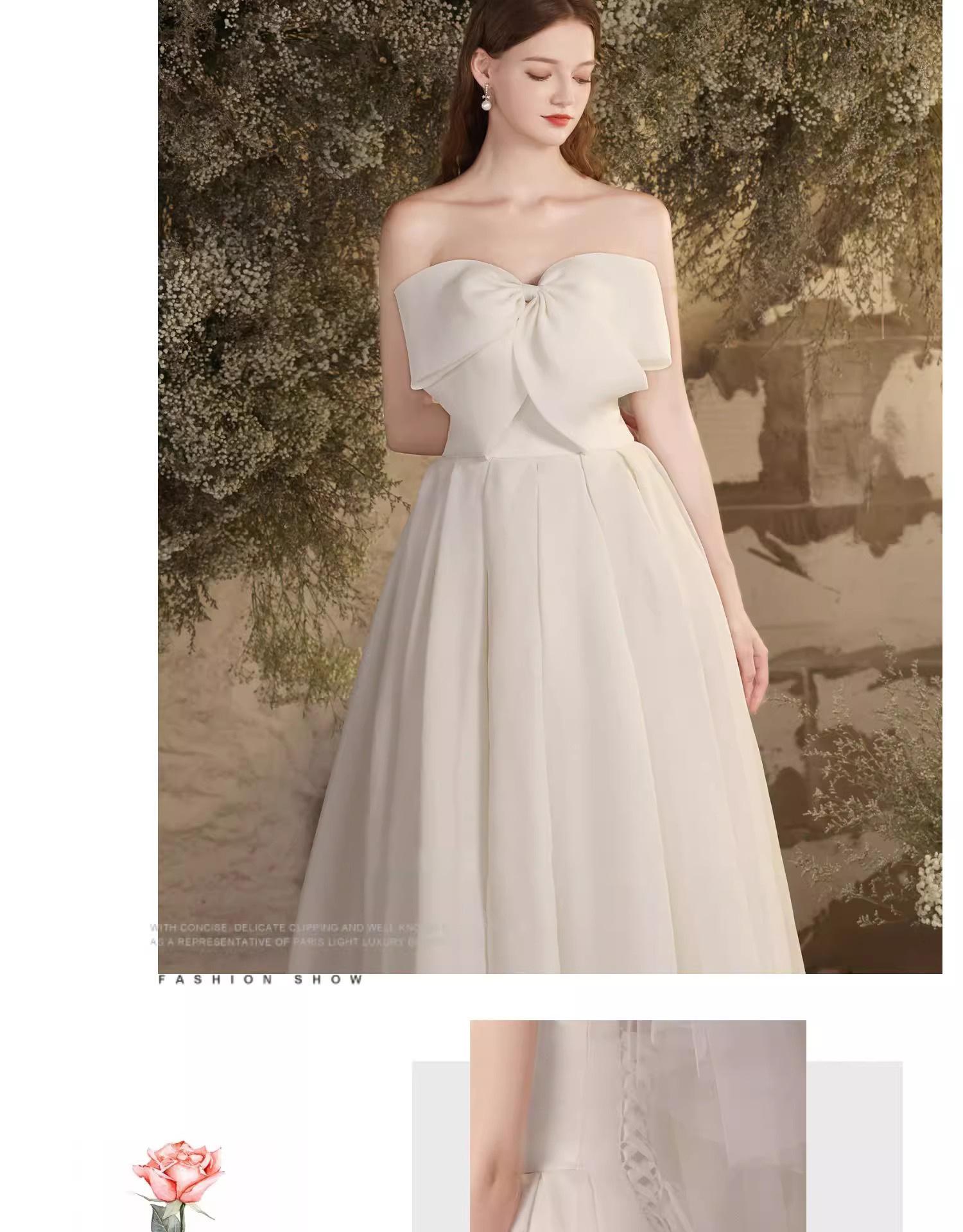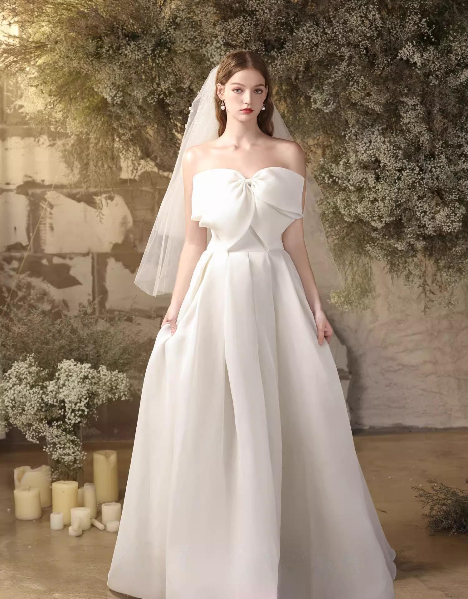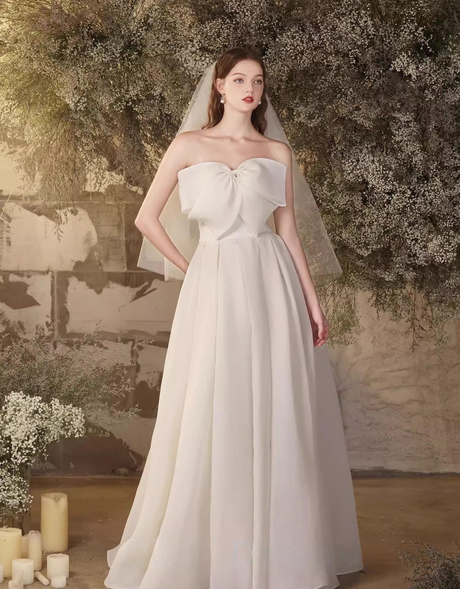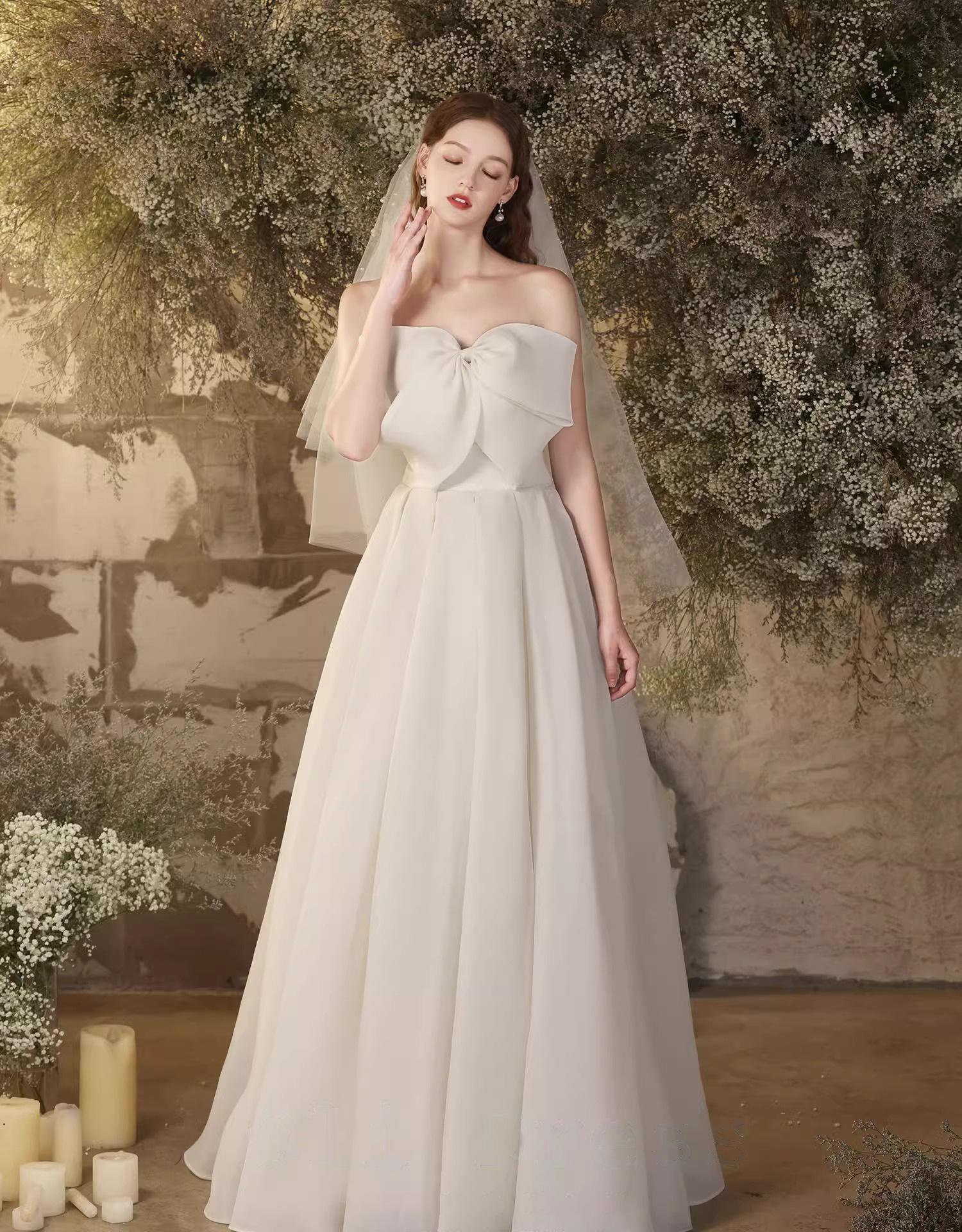 Vestido Largo Strapless con Lazo Blanco para Novia Vestido de Cena Boda para Mujer 2025 Vestido Sencillo para Presentar Reunión Anual