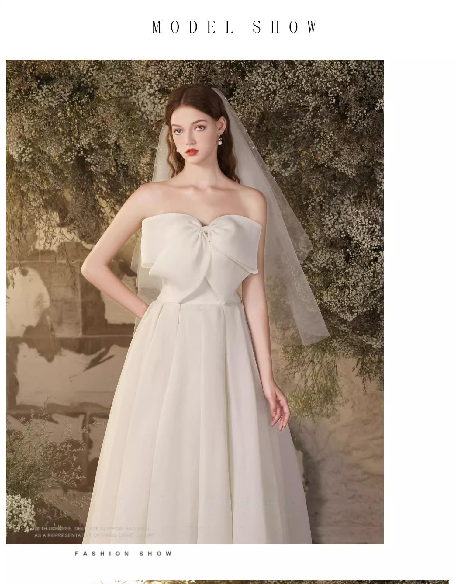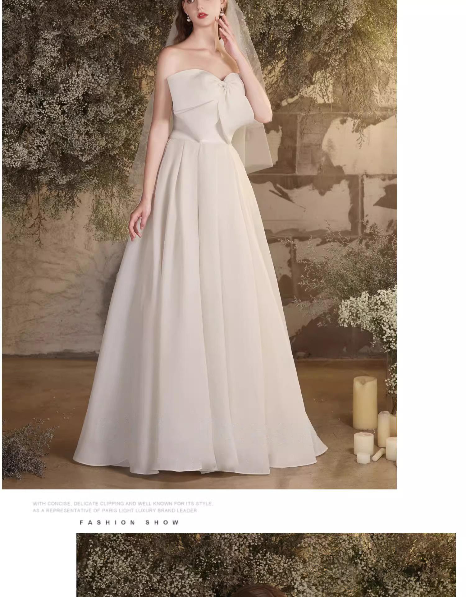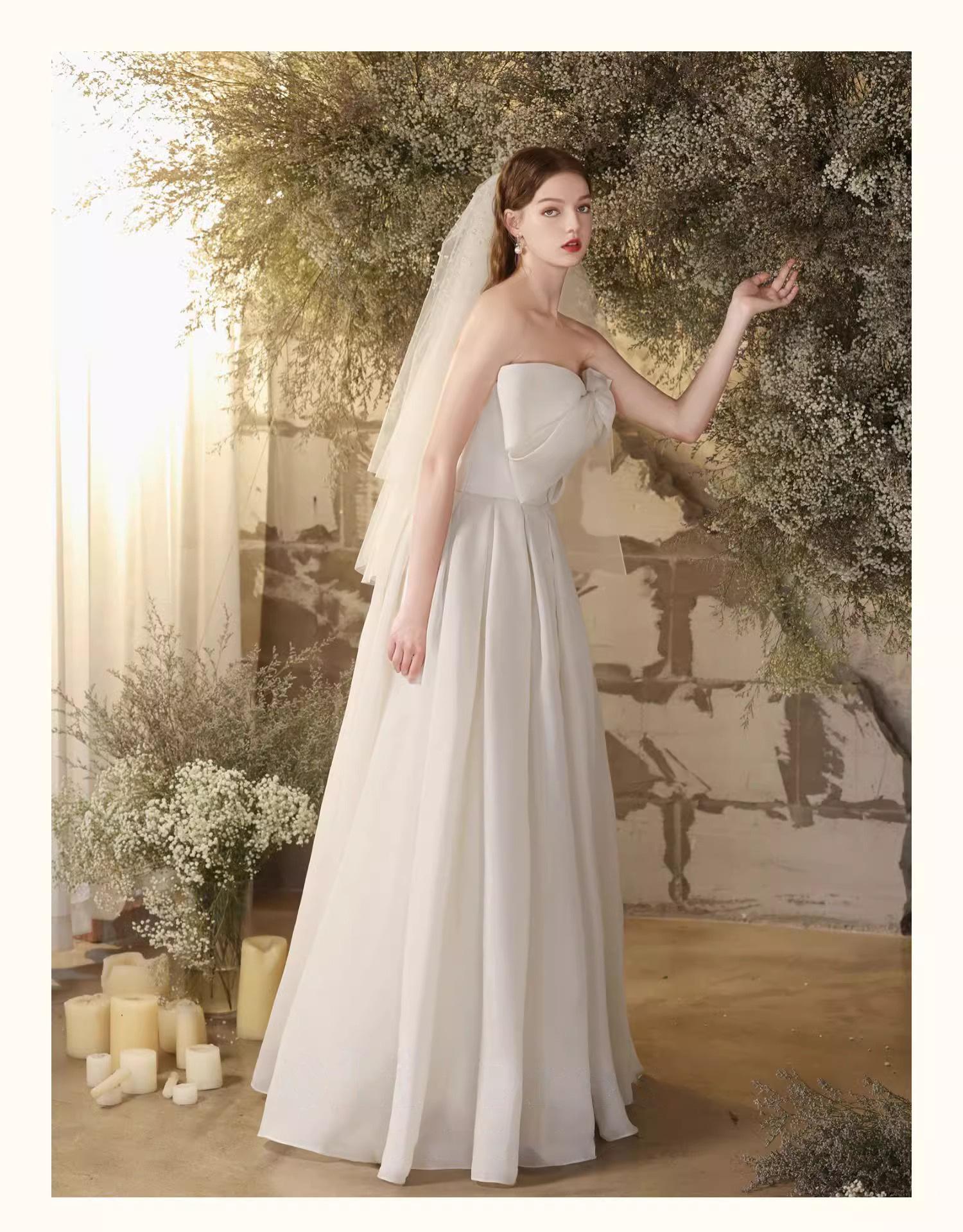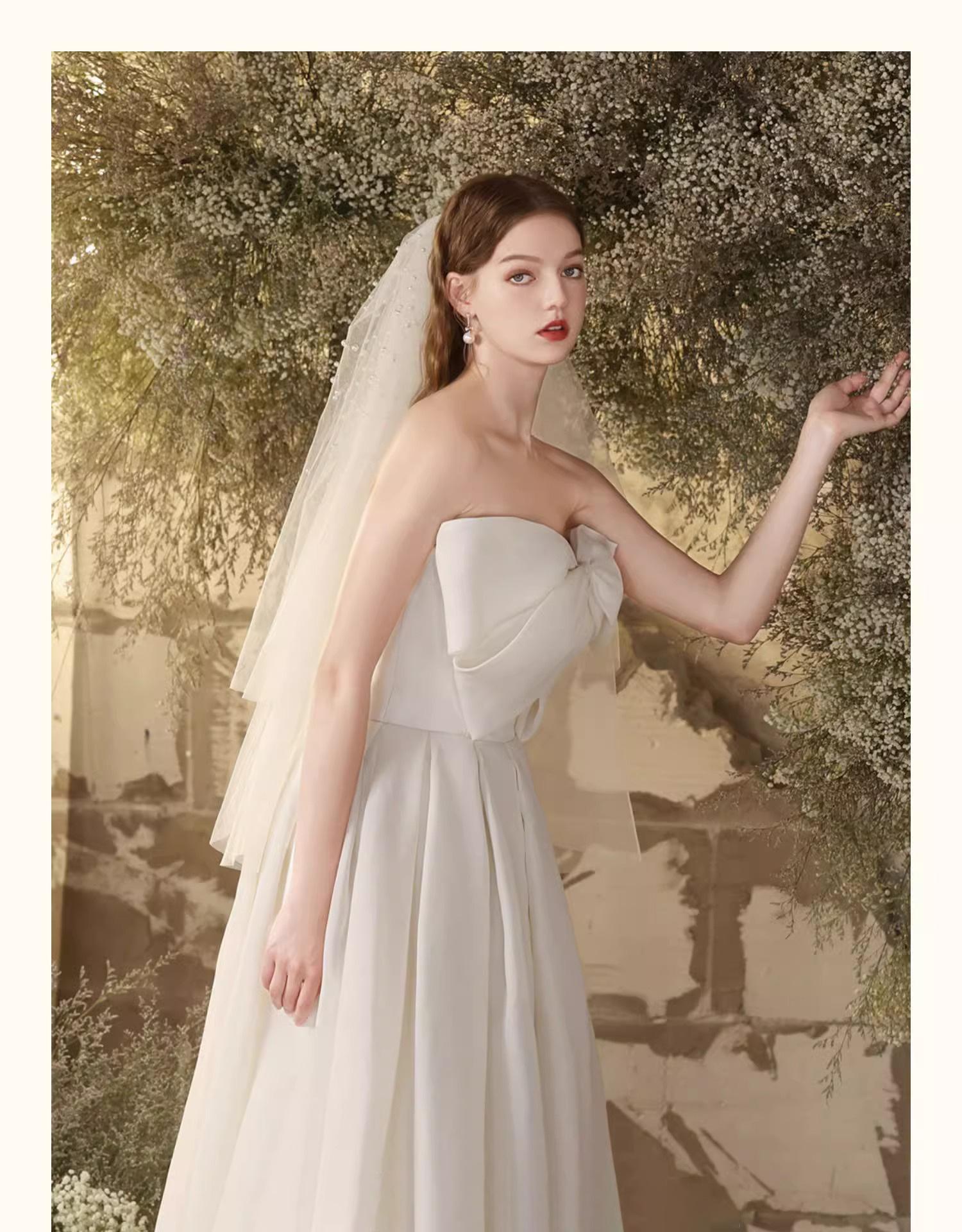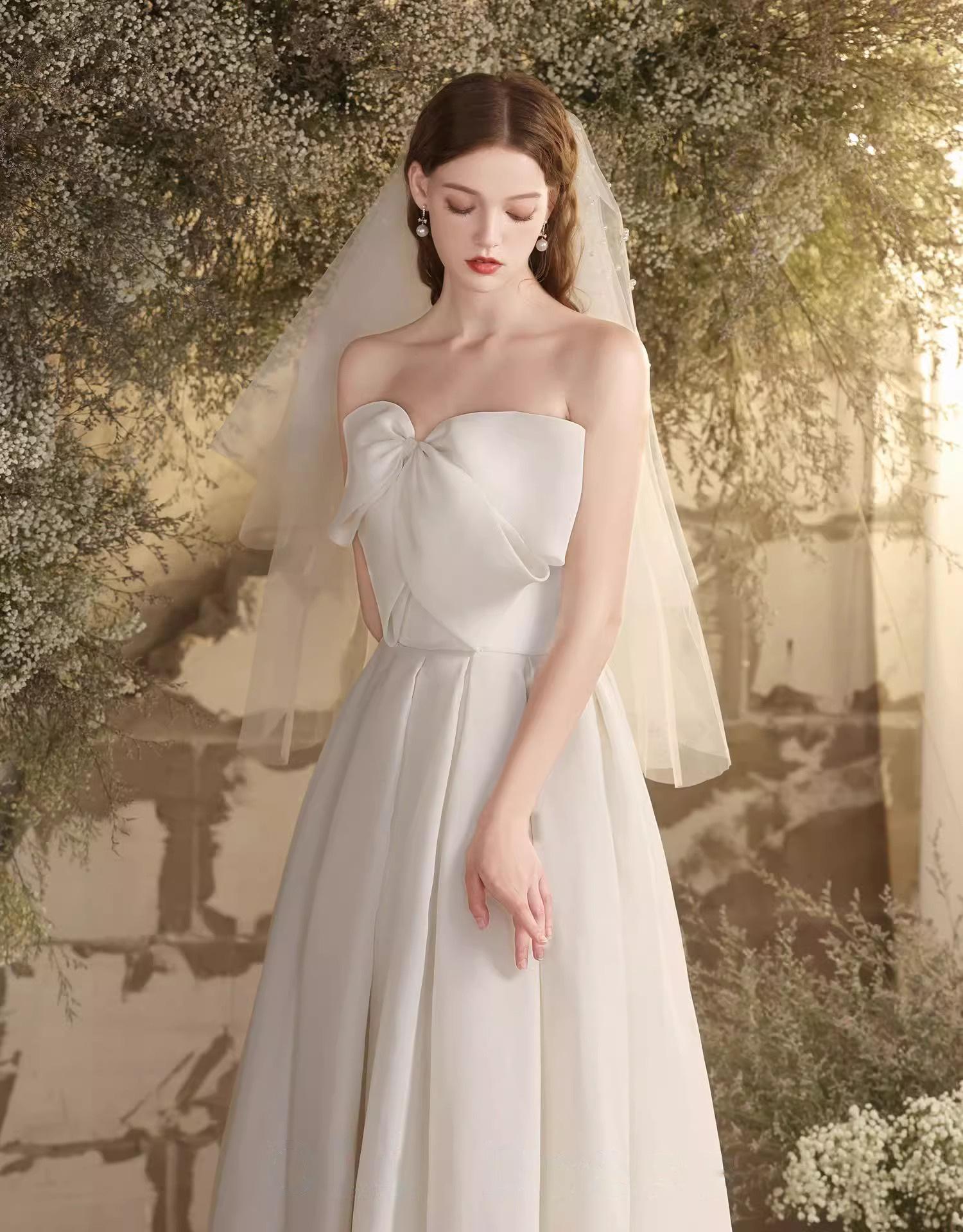 Vestido Largo Strapless con Lazo Blanco para Novia Vestido de Cena Boda para Mujer 2025 Vestido Sencillo para Presentar Reunión Anual