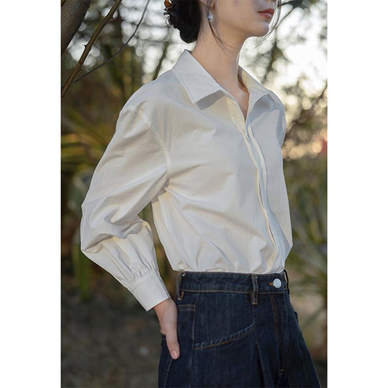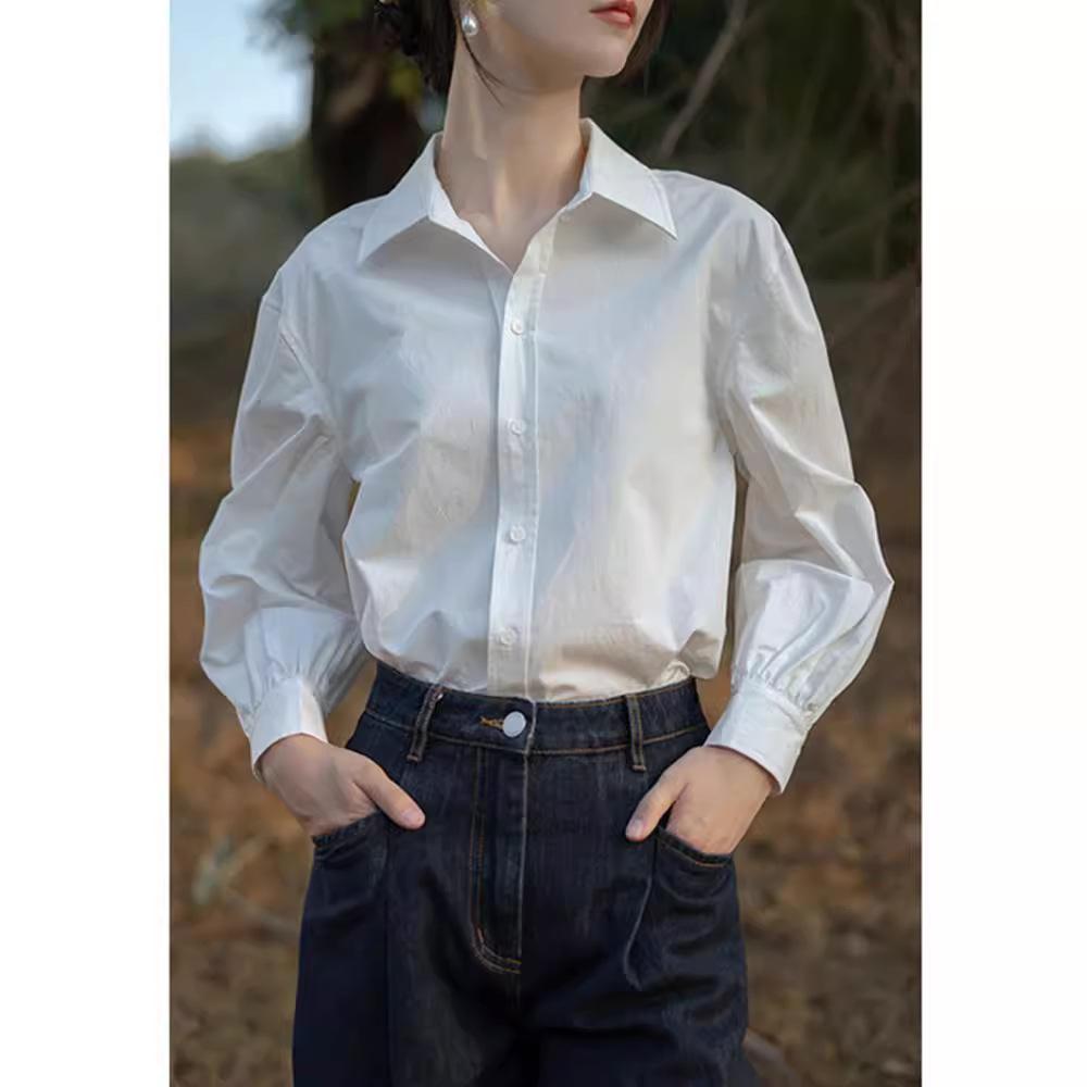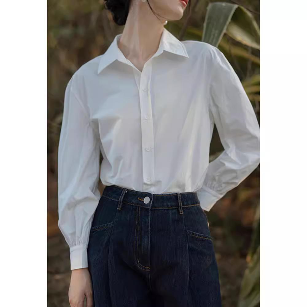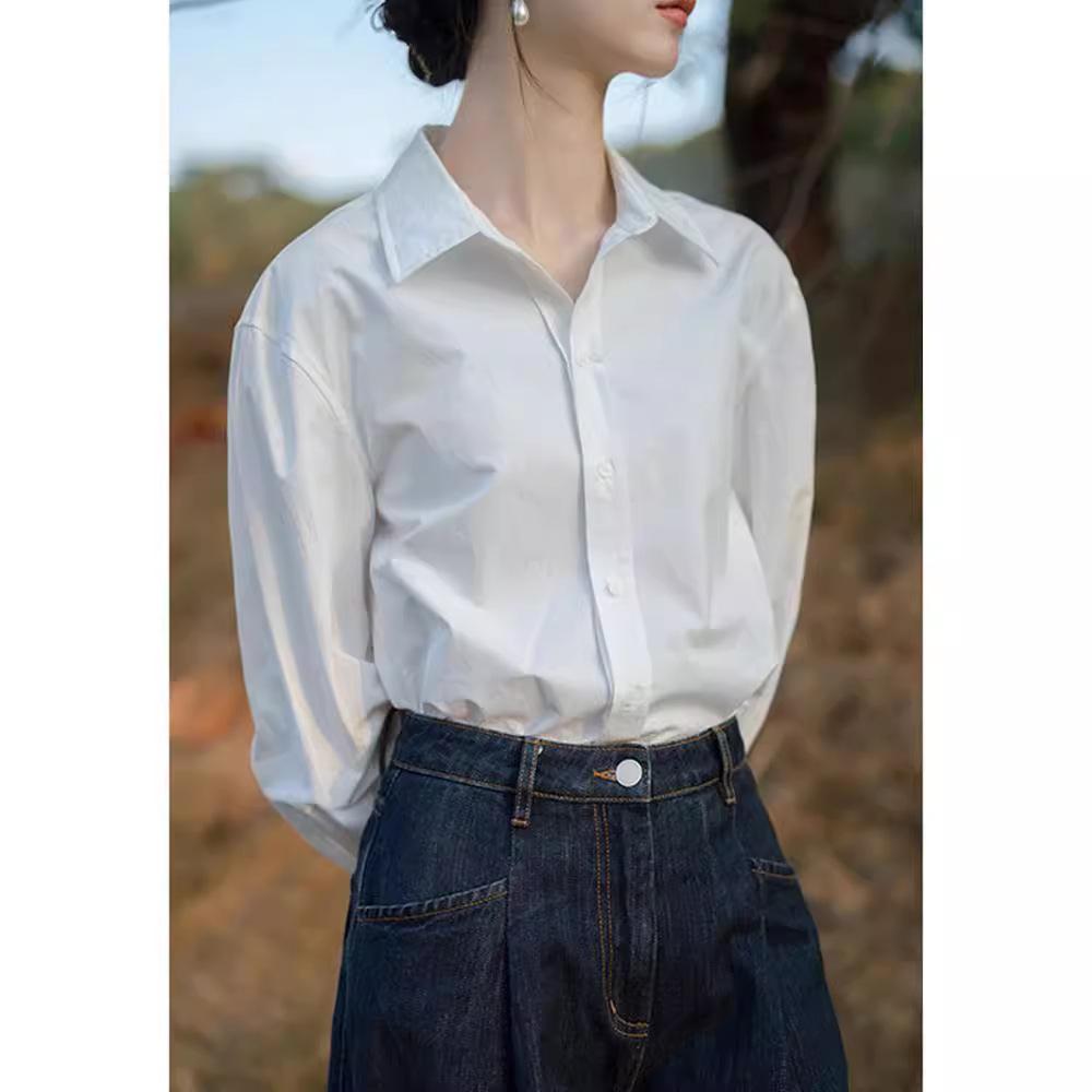 Camisa Blanca Francesa de Manga Larga para Mujer Primavera y Otoño Sentido del Diseño Chic Nicho Camisa Profesional Pequeño Top de Alta Gama
