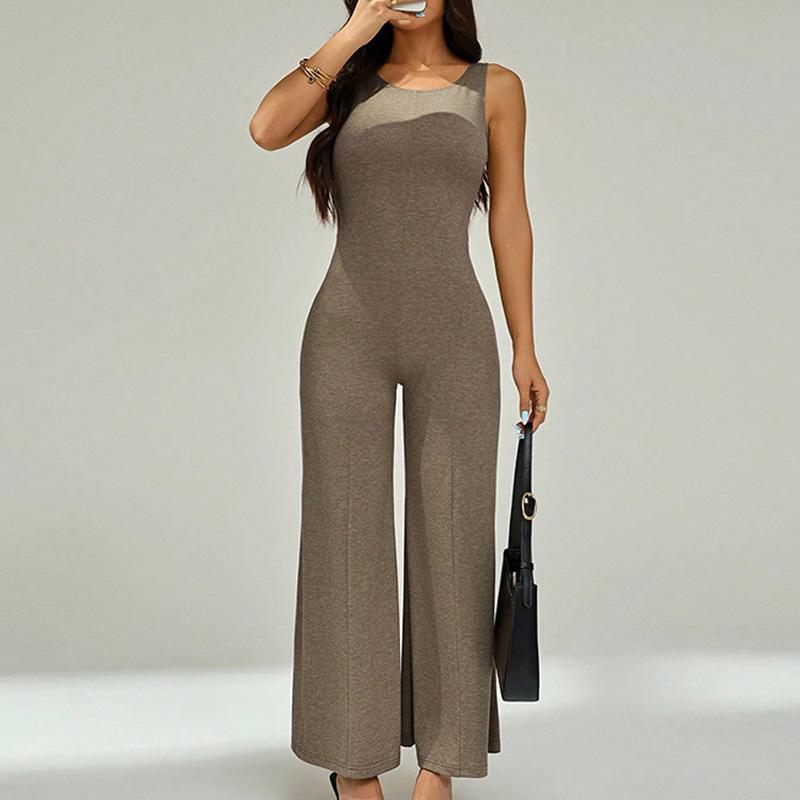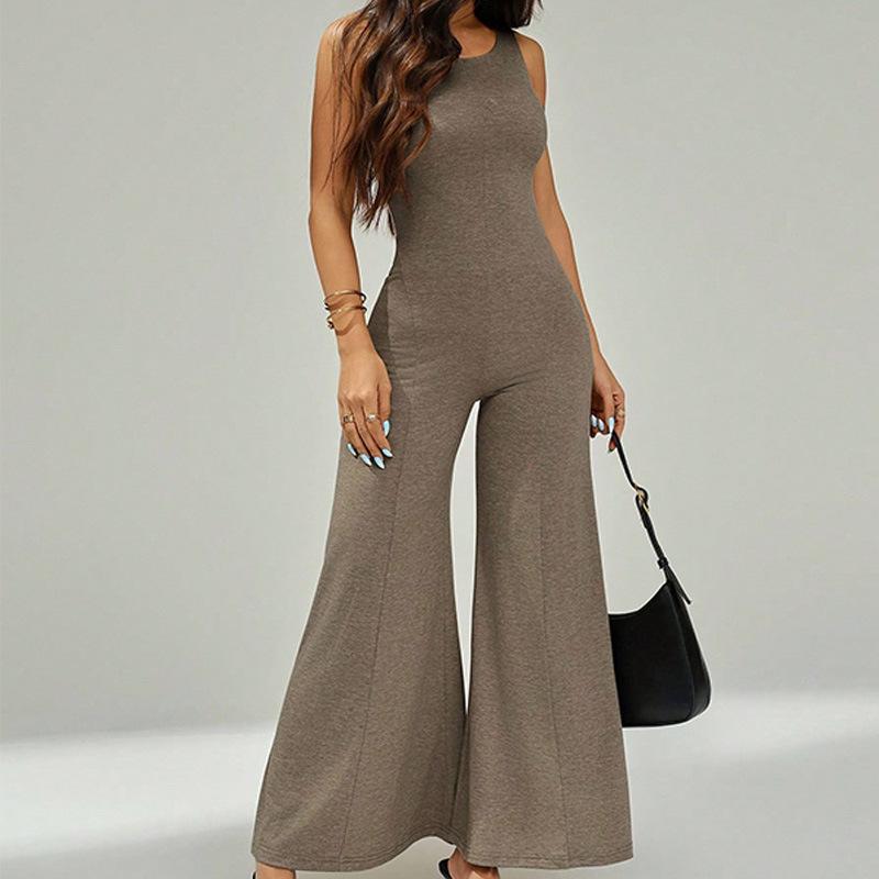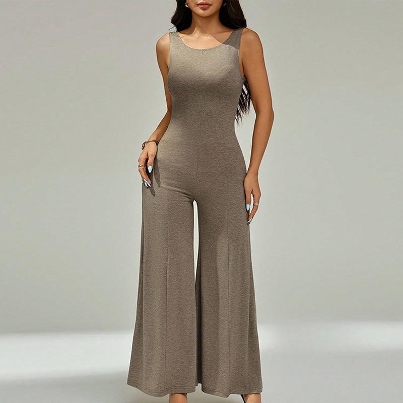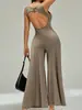 2025 Europeo y Americano Nuevo Verano Color Sólido Sexy Moda Adelgazante Sin Espalda Sin Mangas Personalidad Versátil Mono Largo para Mujer