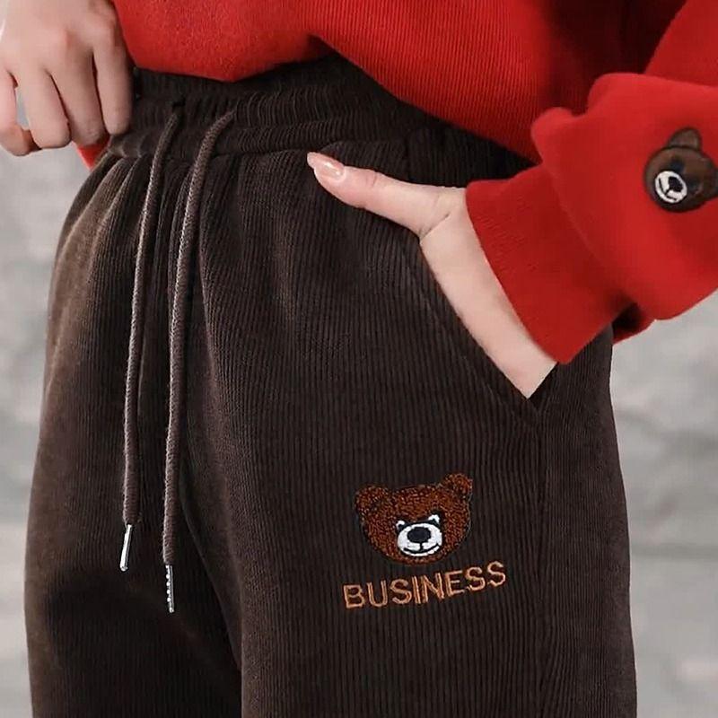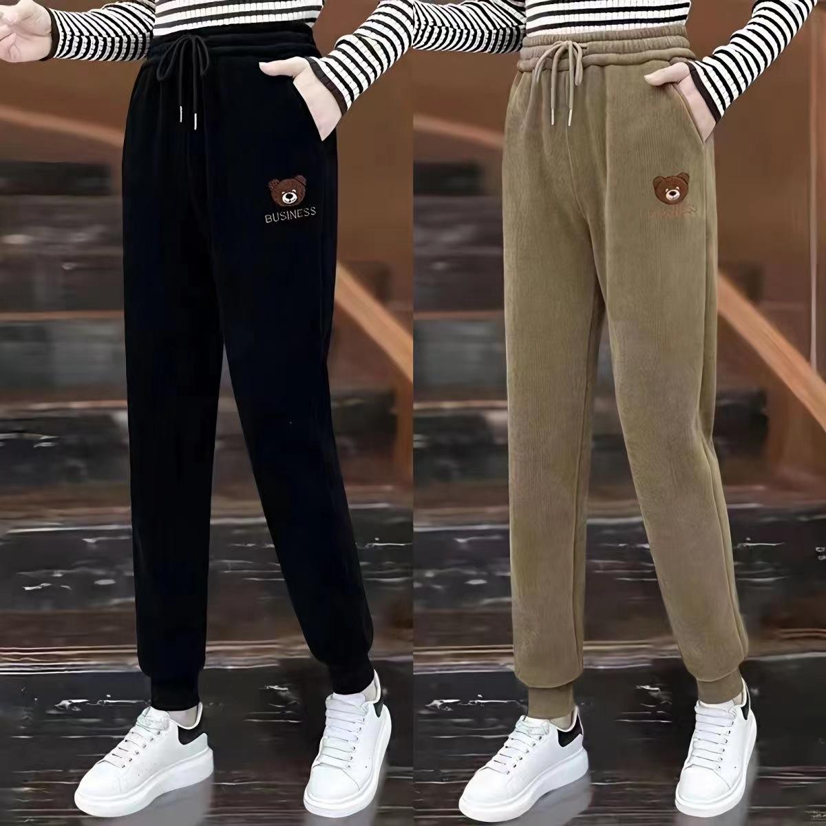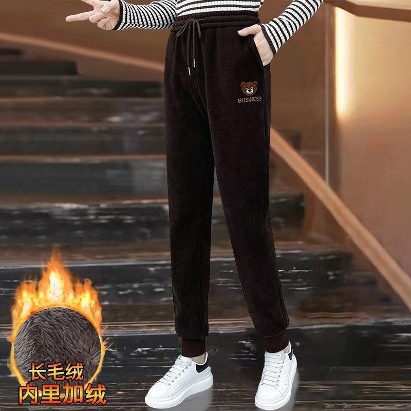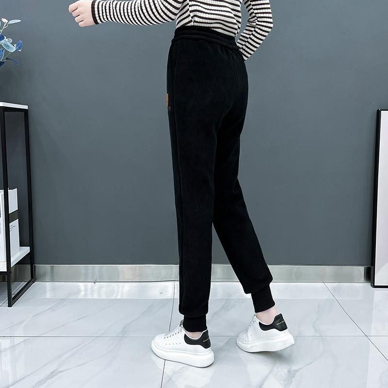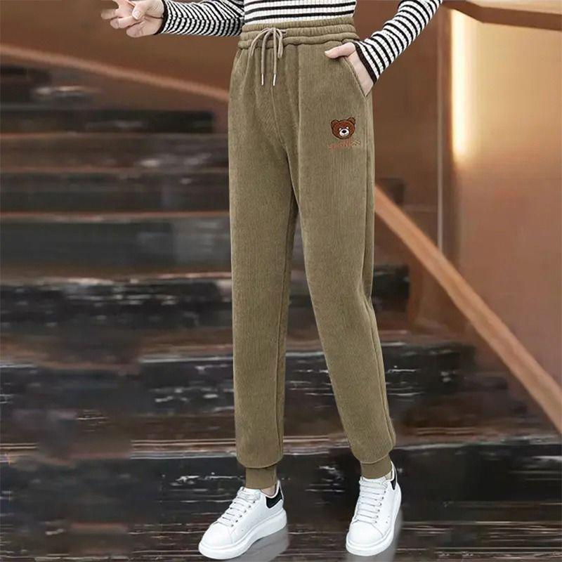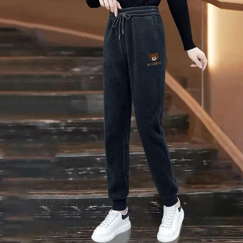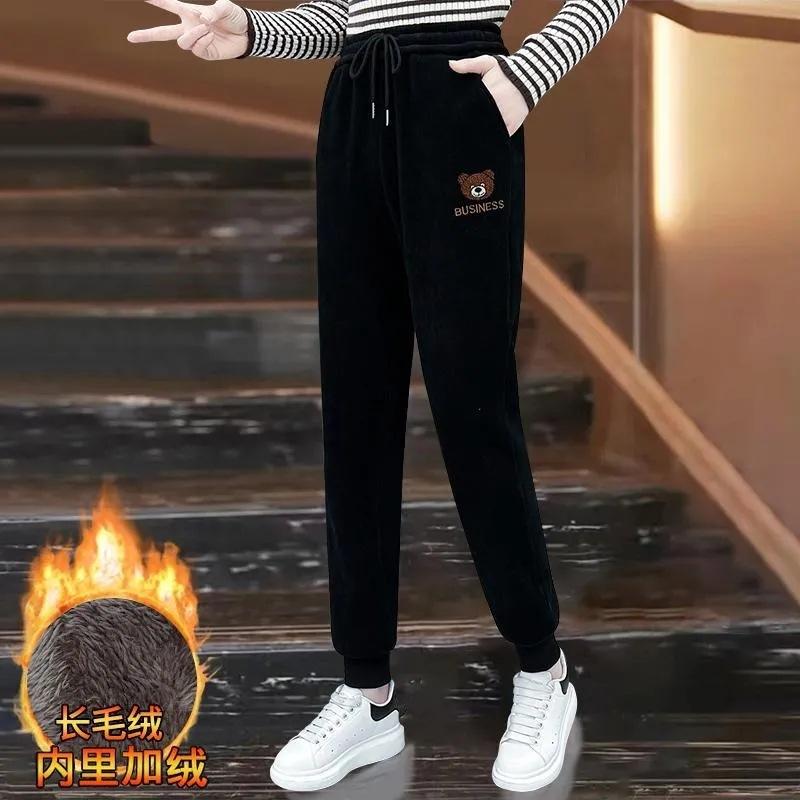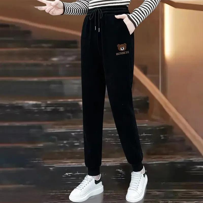 Pantalones casuales gruesos con forro polar y tobilleras para mujer 2023 primavera, otoño e invierno Nuevos pantalones largos holgados de lana para sudar, pantalones deportivos de moda