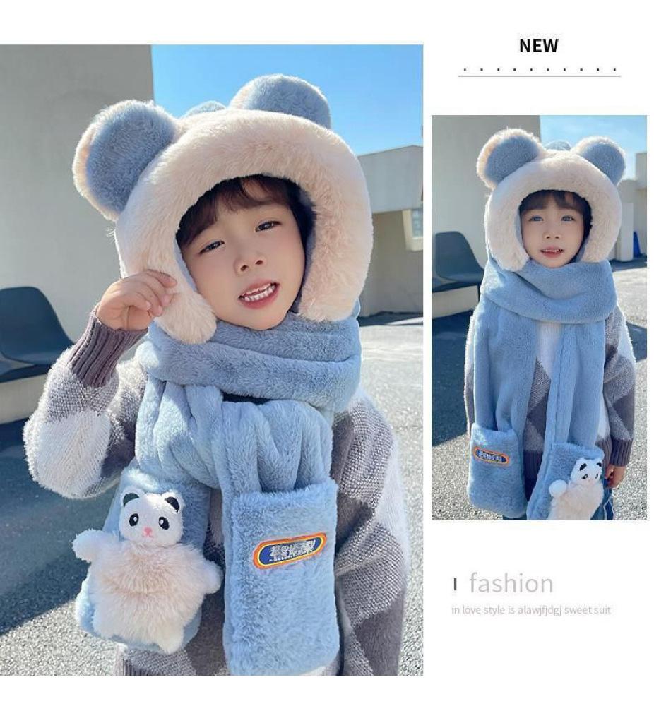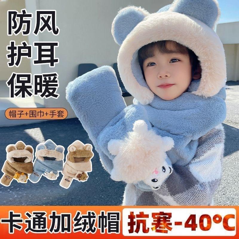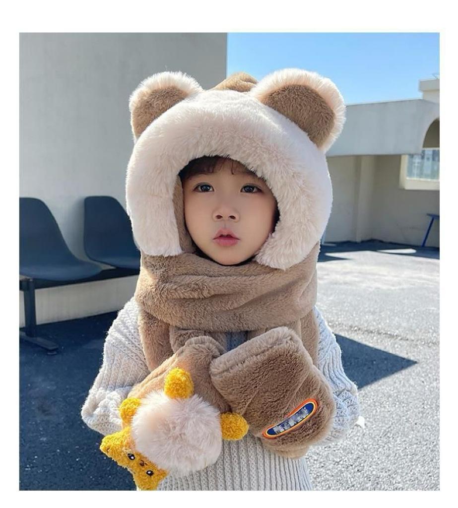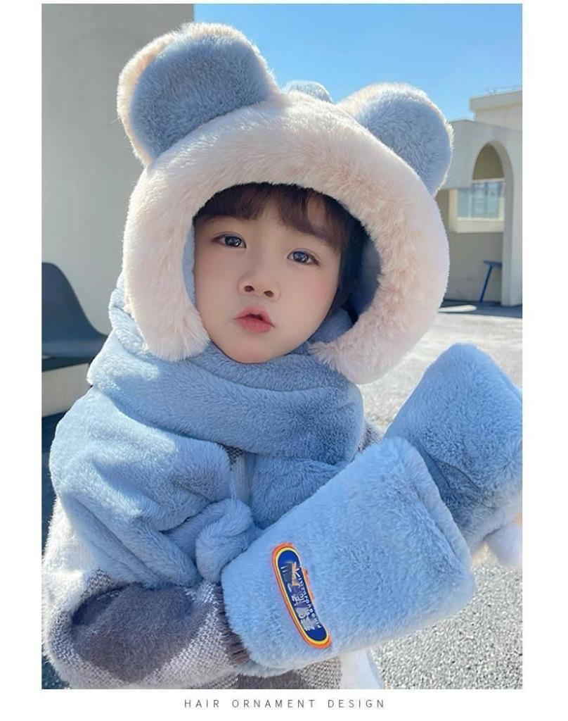 Gorro de Invierno para Niños Set de Tres Piezas Bufanda Guantes Gorro de Una Pieza con Protección para las Orejas Gorro Grueso y Esponjoso del Noreste para Niños y Niñas