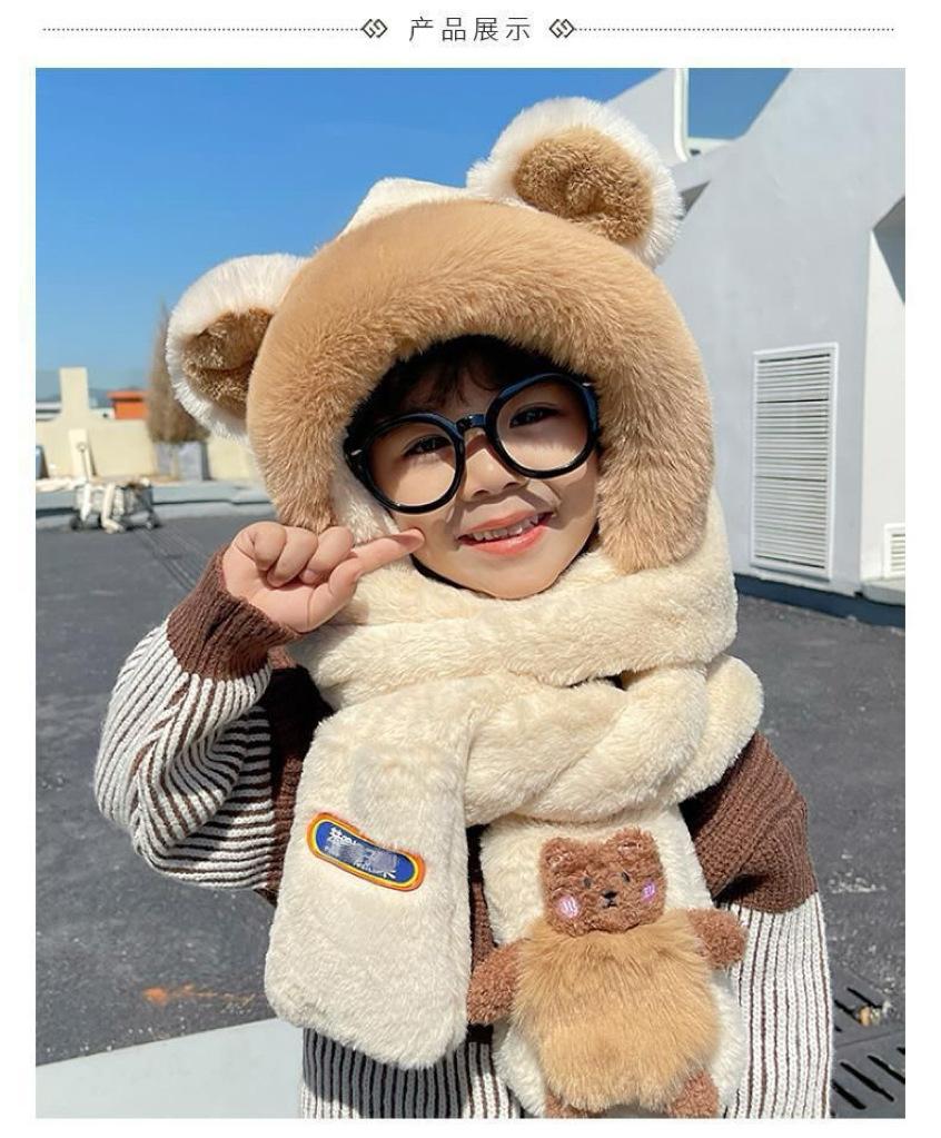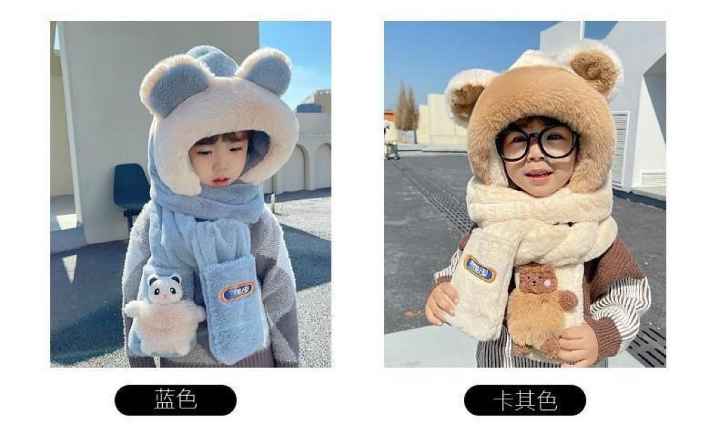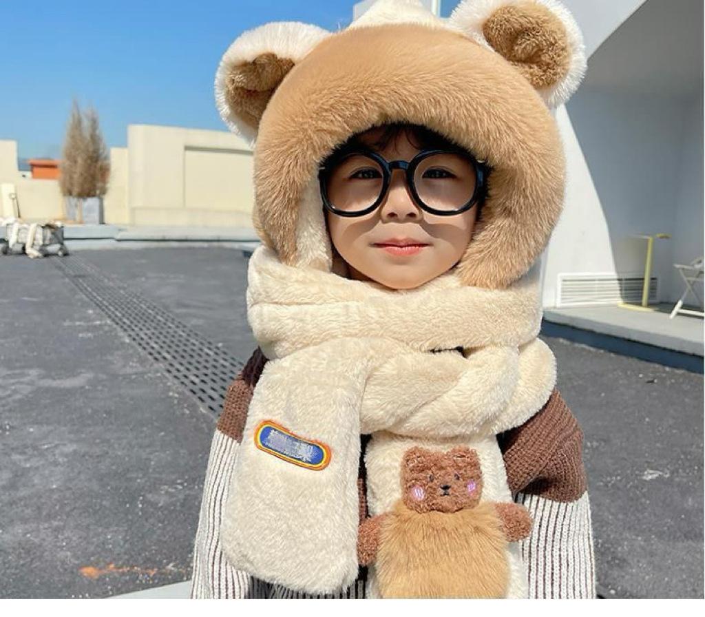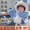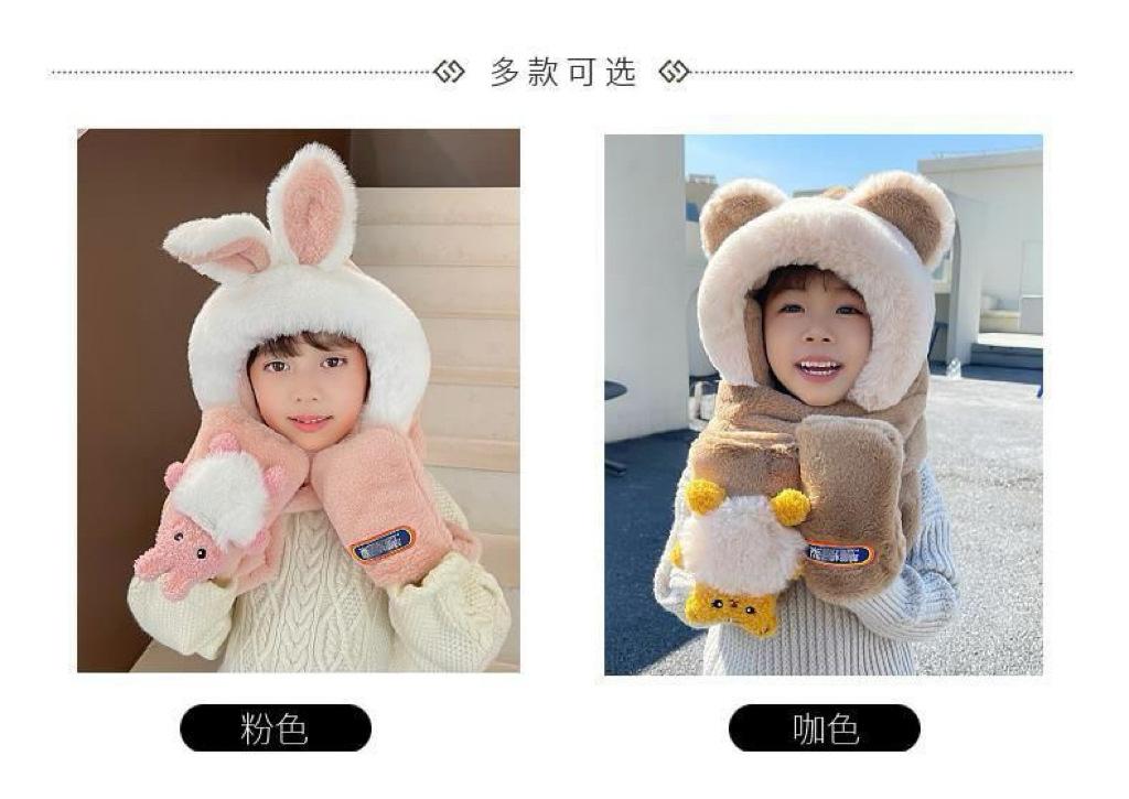 Gorro de Invierno para Niños Set de Tres Piezas Bufanda Guantes Gorro de Una Pieza con Protección para las Orejas Gorro Grueso y Esponjoso del Noreste para Niños y Niñas
