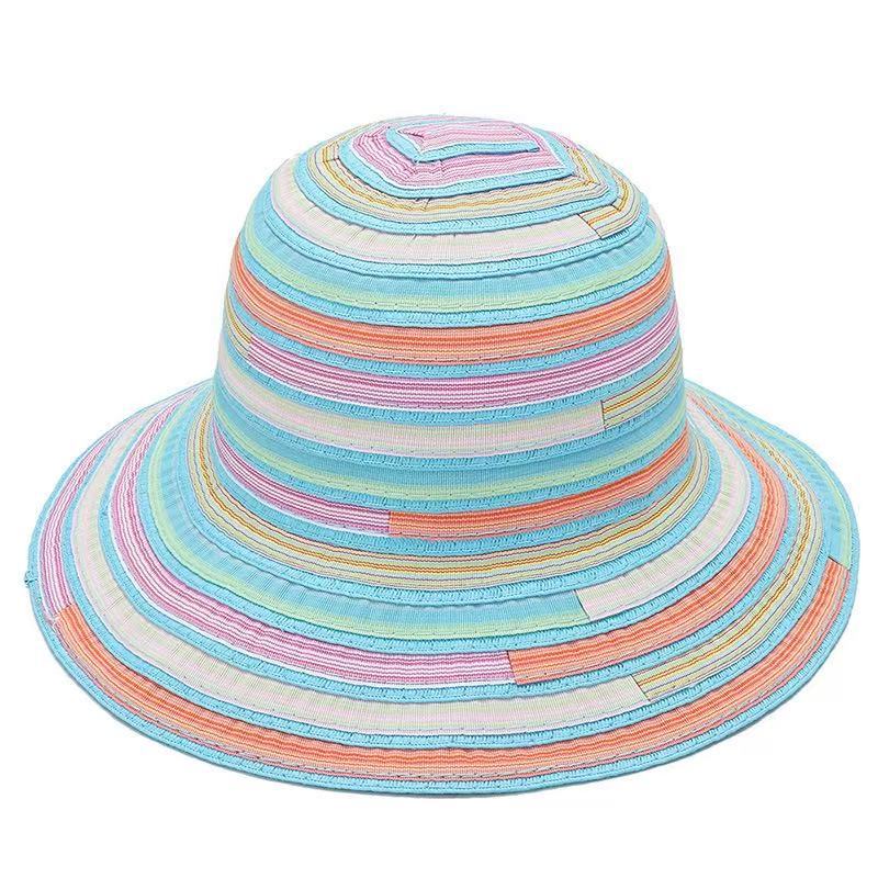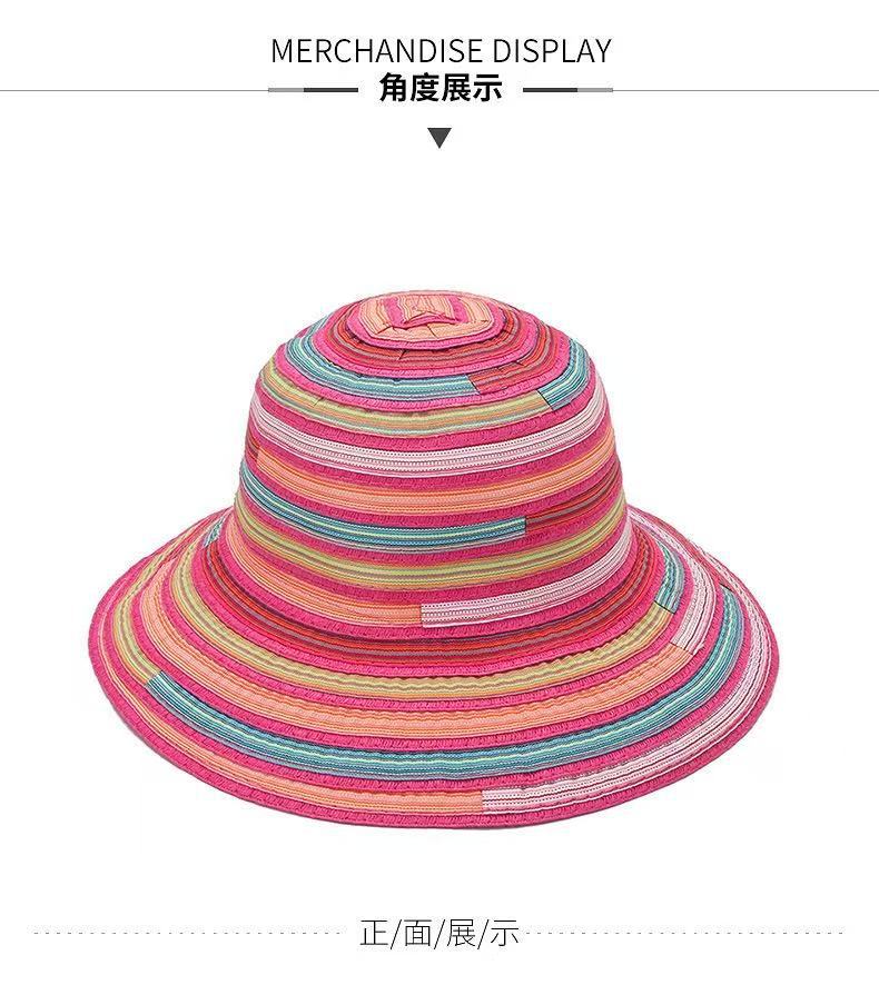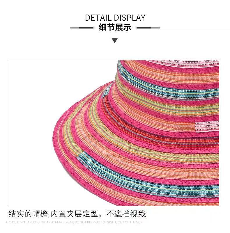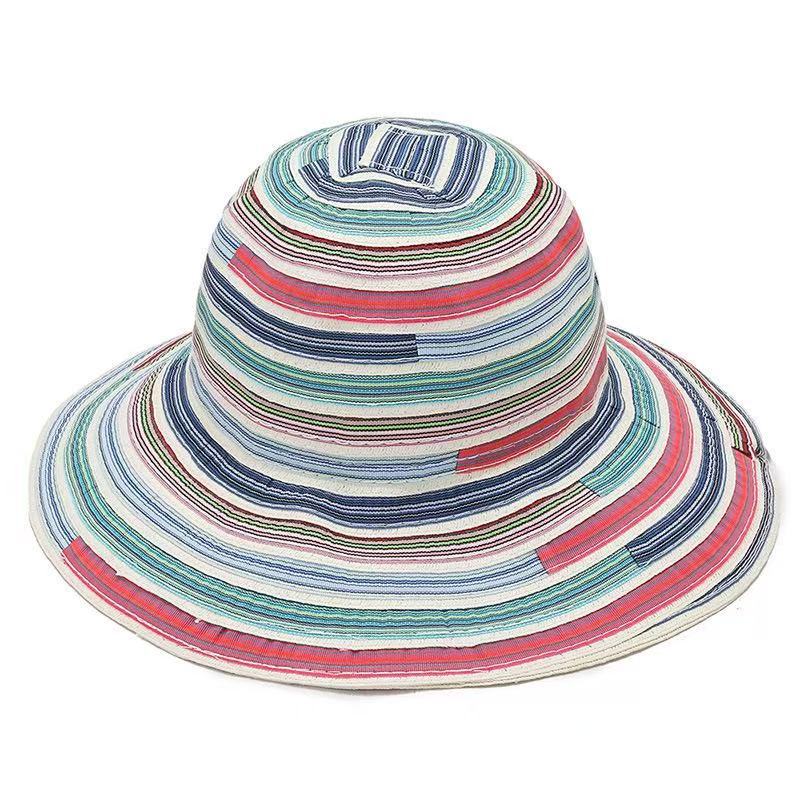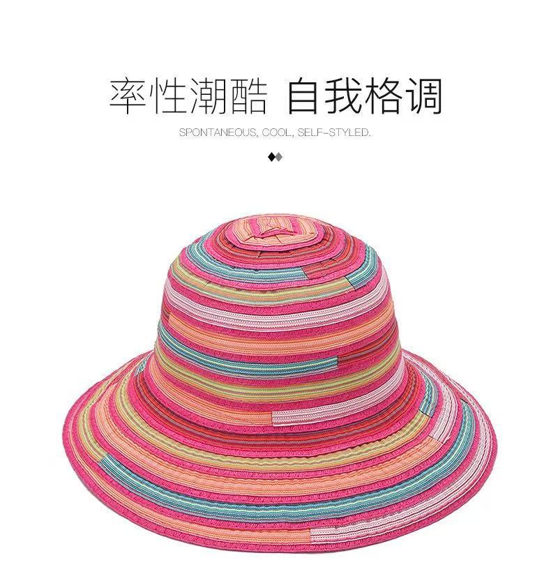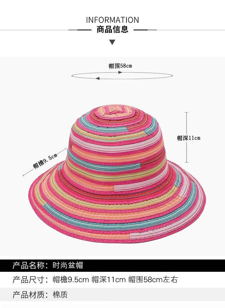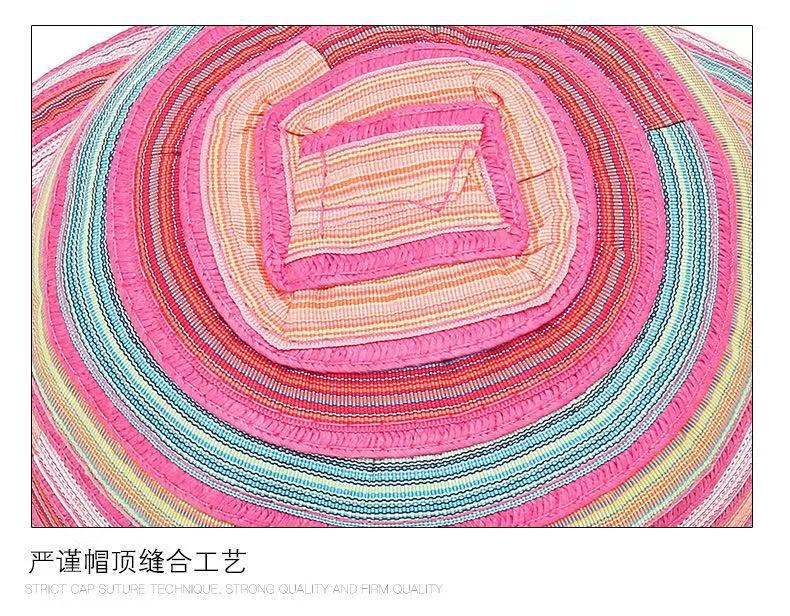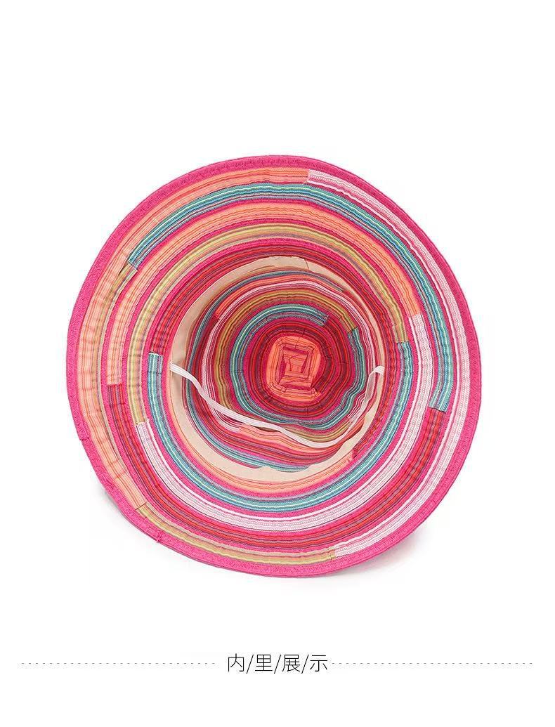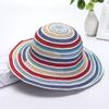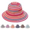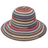 Sombrero de Protección Solar al por Mayor Sombrero de Sol de Rayas Coloridas de Copa Redonda Vacaciones de Playa Pastoral Sombrero de Pescador Bordado a Mano Estilo Vacacional