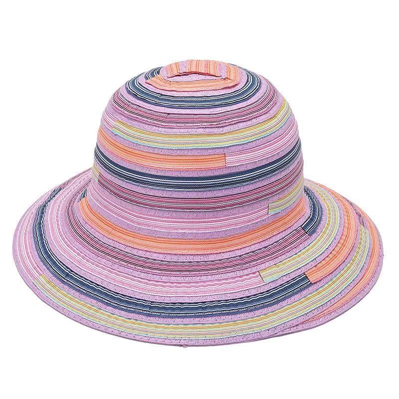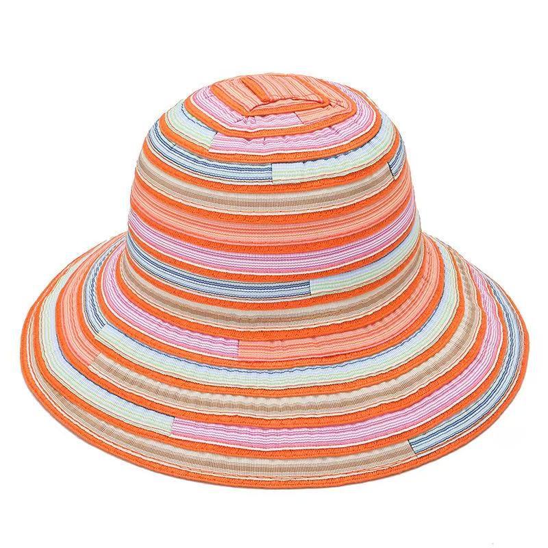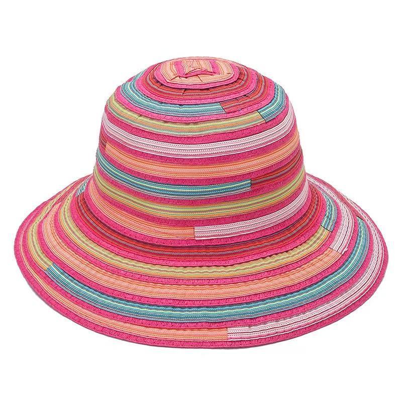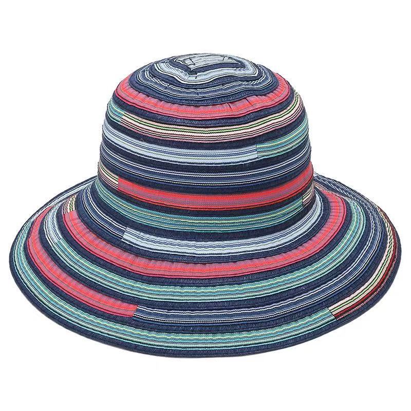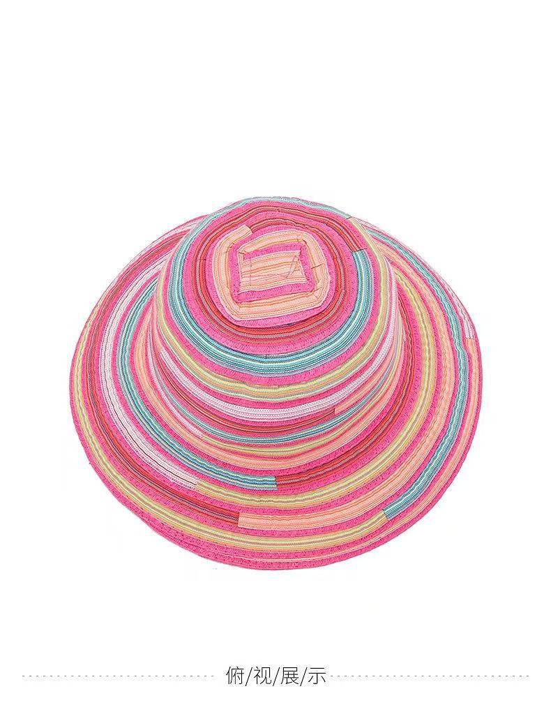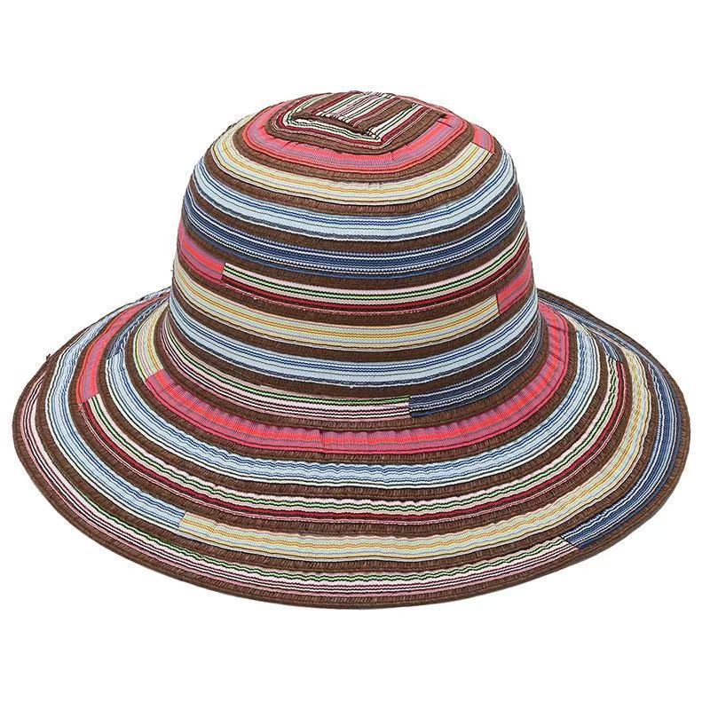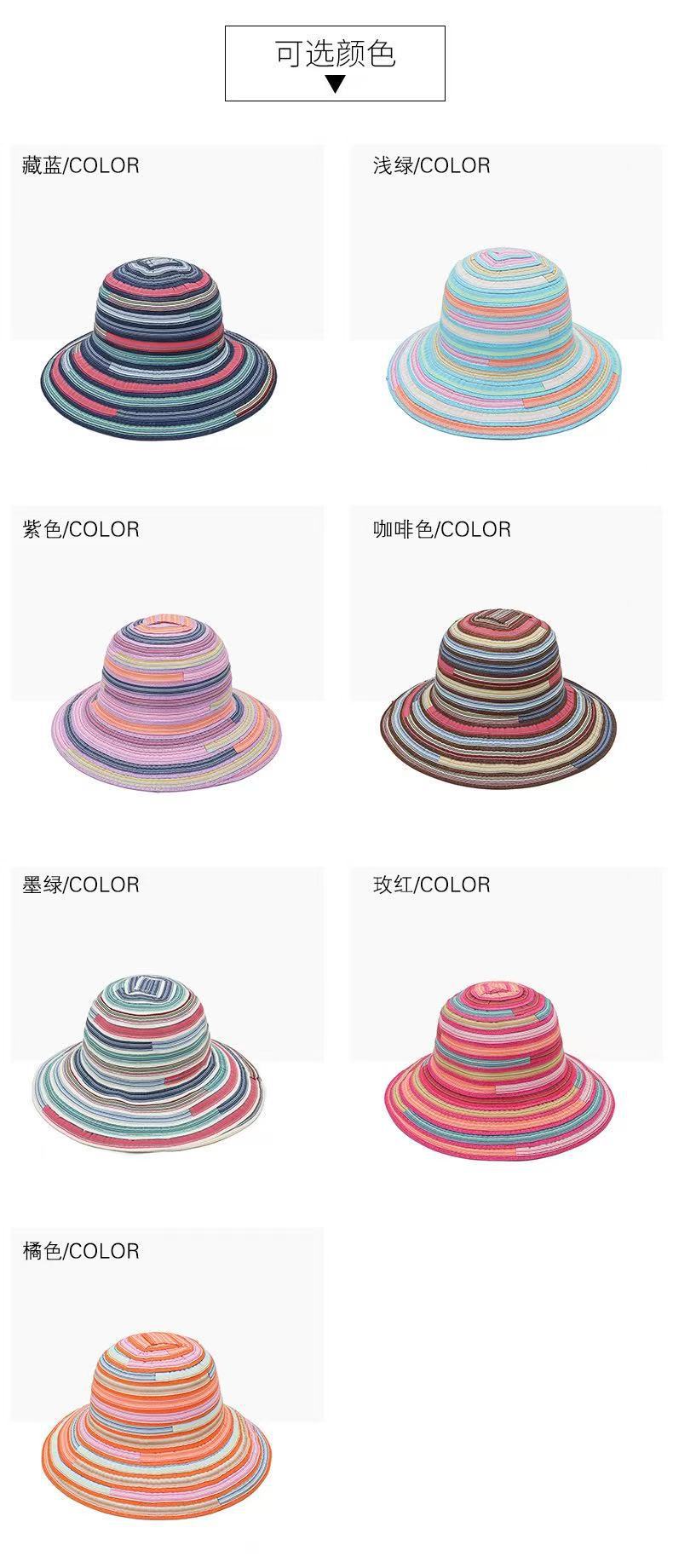 Sombrero de Protección Solar al por Mayor Sombrero de Sol de Rayas Coloridas de Copa Redonda Vacaciones de Playa Pastoral Sombrero de Pescador Bordado a Mano Estilo Vacacional