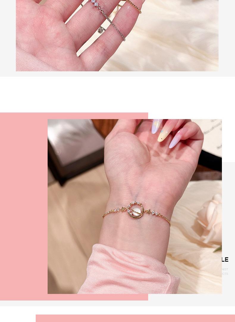 Pulsera Saturno Moda Exquisita Joyería Nicho Regalo Nicho para Novia Ins Lujo Ligero Alta Gama Versión Coreana Pulsera de Zircón