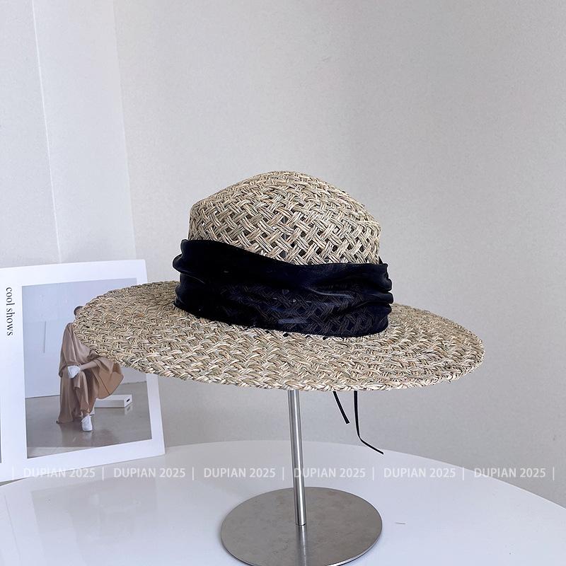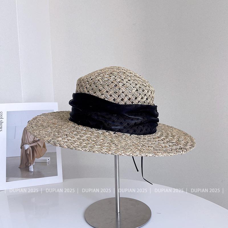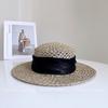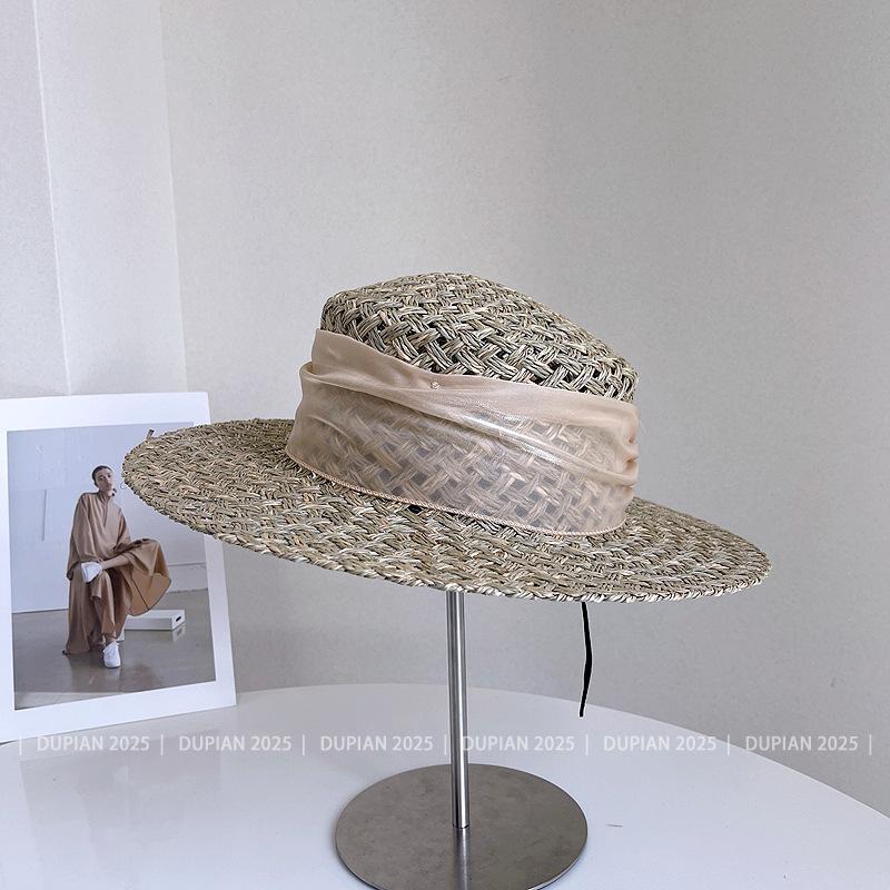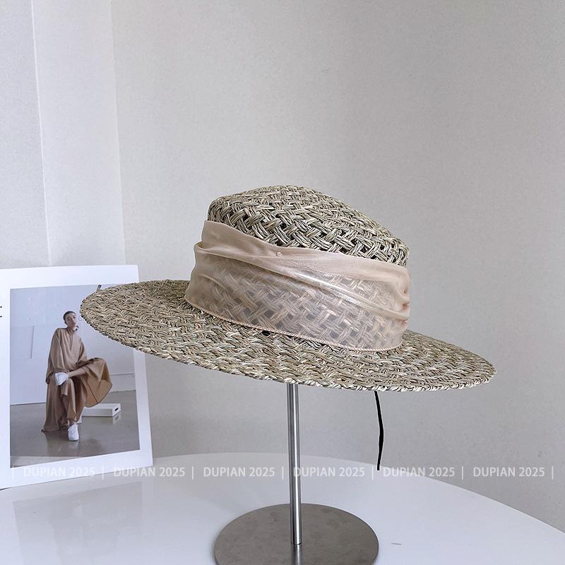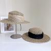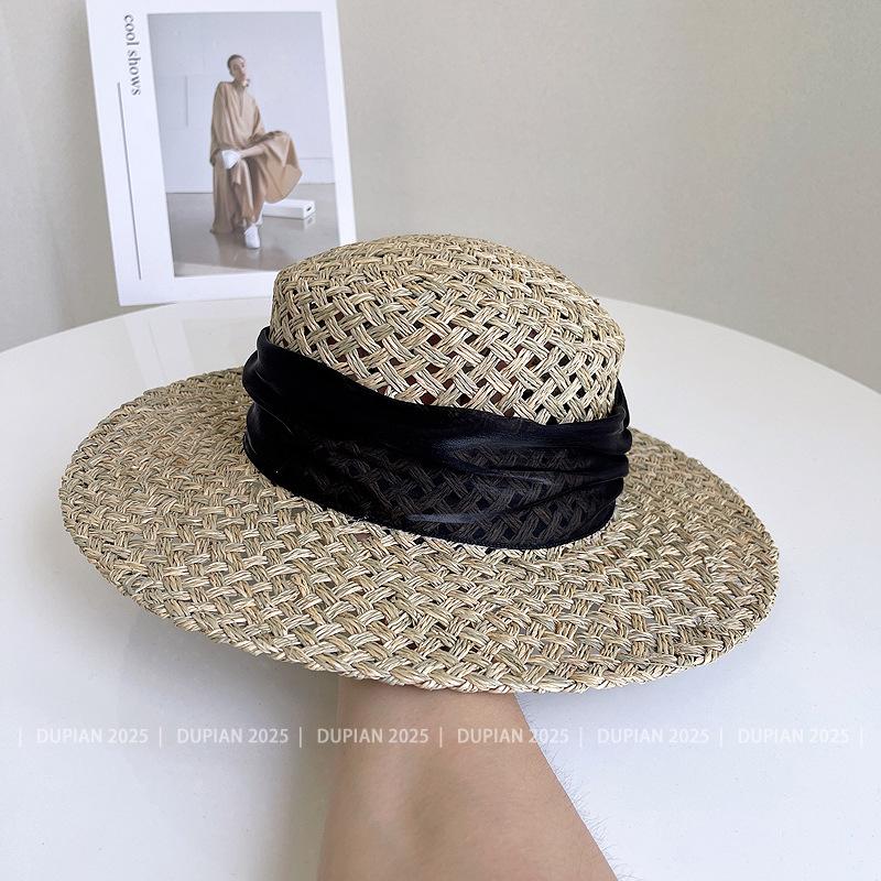 Sombrero de Paja de Satén Mercerizado de Copa Plana para Mujer, Versátil Sombrero de Paja Casual de Verano con Protección Solar para Vacaciones en la Playa, Tendencia Sombrero de Playa