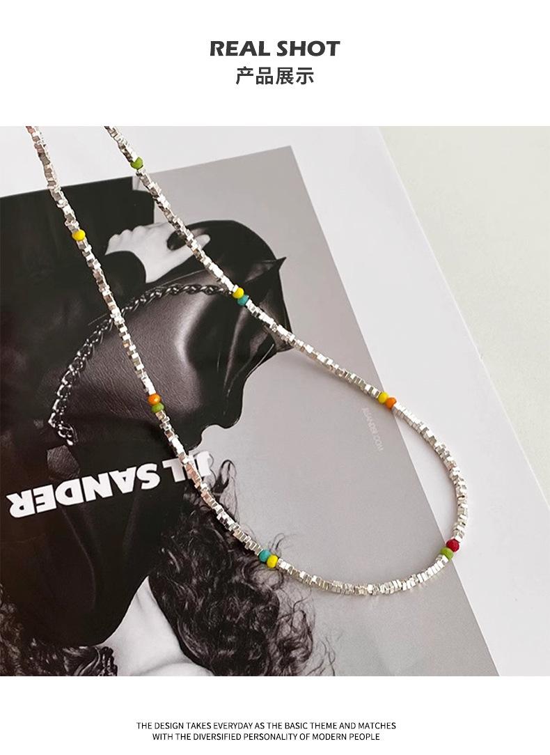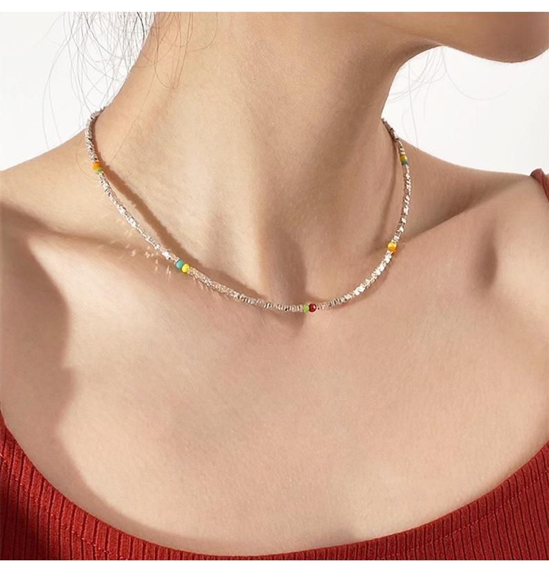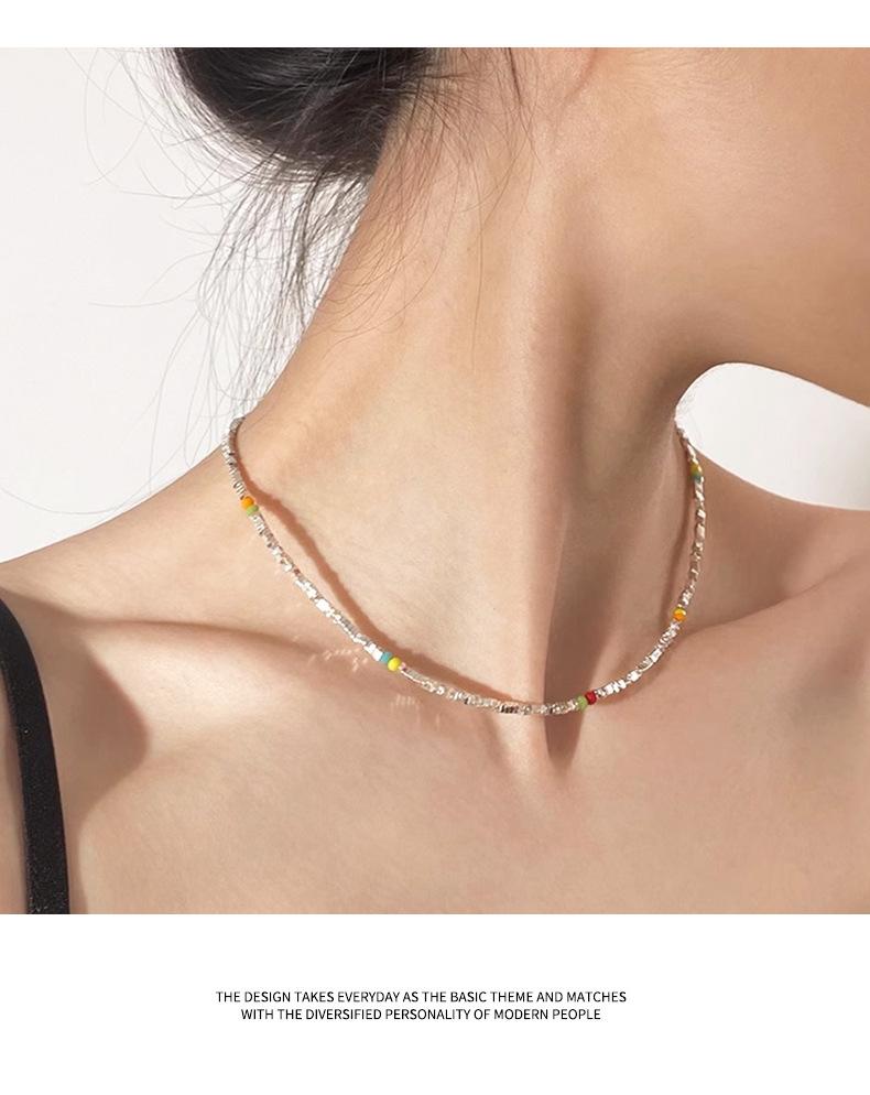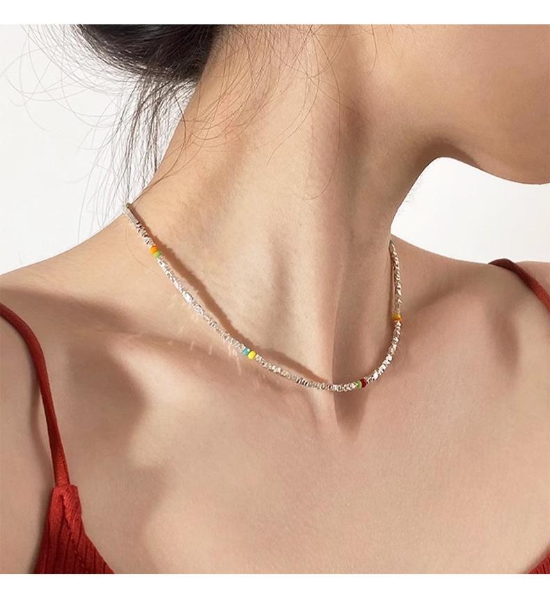 Dopamina Collar Plateado Colorido con Cuentas Accesorios de Moda Personalizados para Mujer Nuevo Estilo Caliente 2025 Cadena para Clavícula Verano