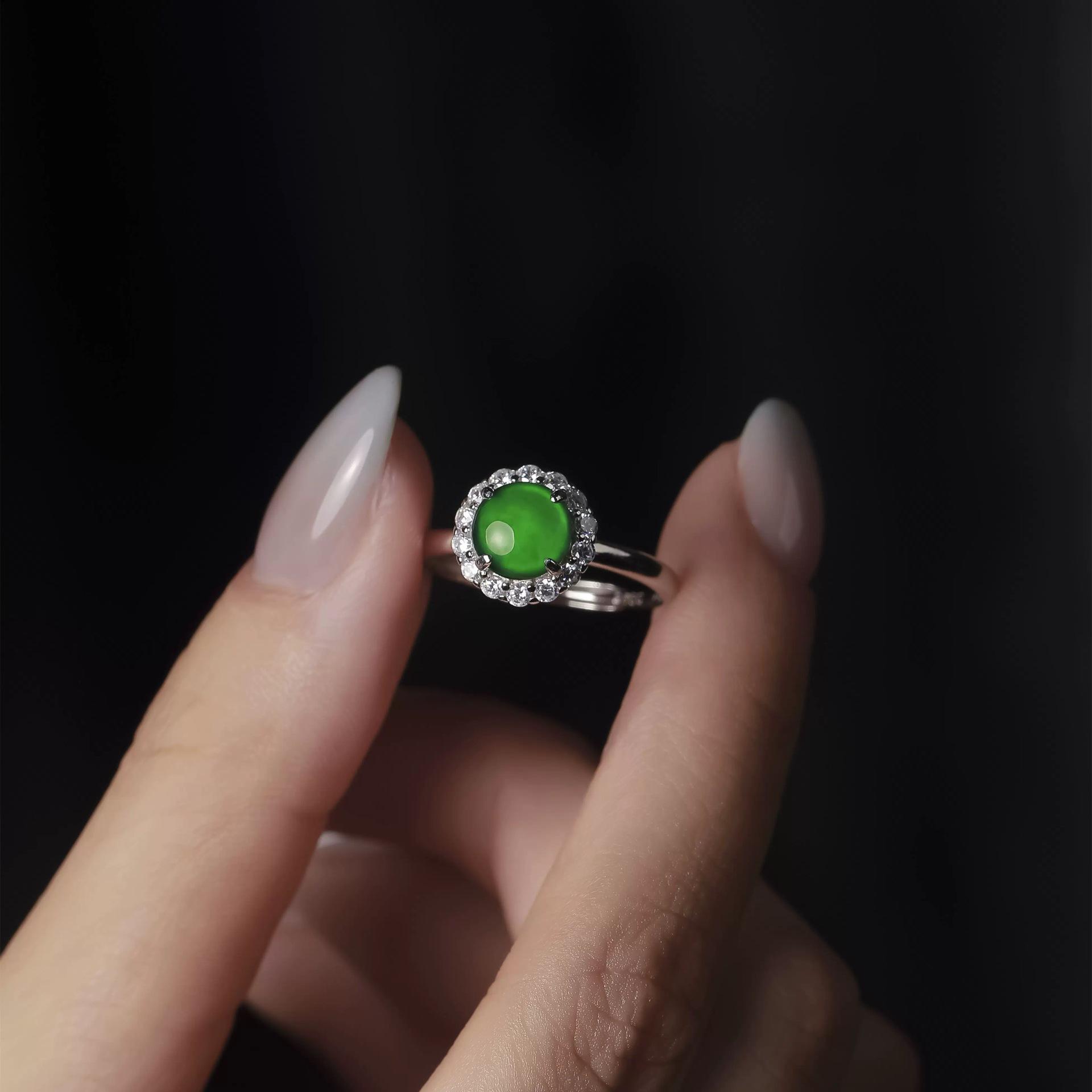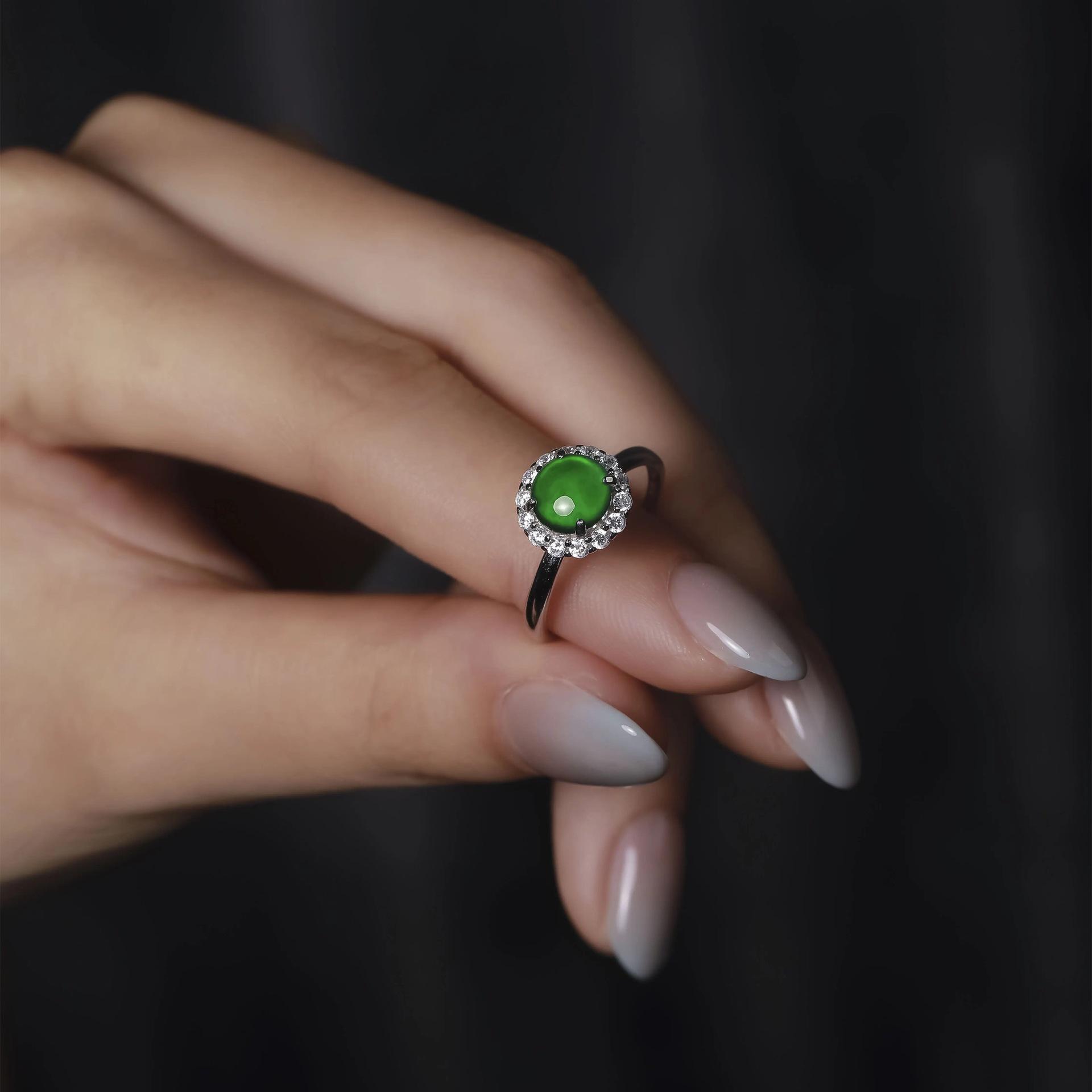Compra Nuevo Anillo Clásico Chino Imitación Hielo Verde Esmeralda Ajustable Lujo Ligero Alta Gama Anillo de Dedo Combinable Joyería de Moda al por mayor en Joom.pro