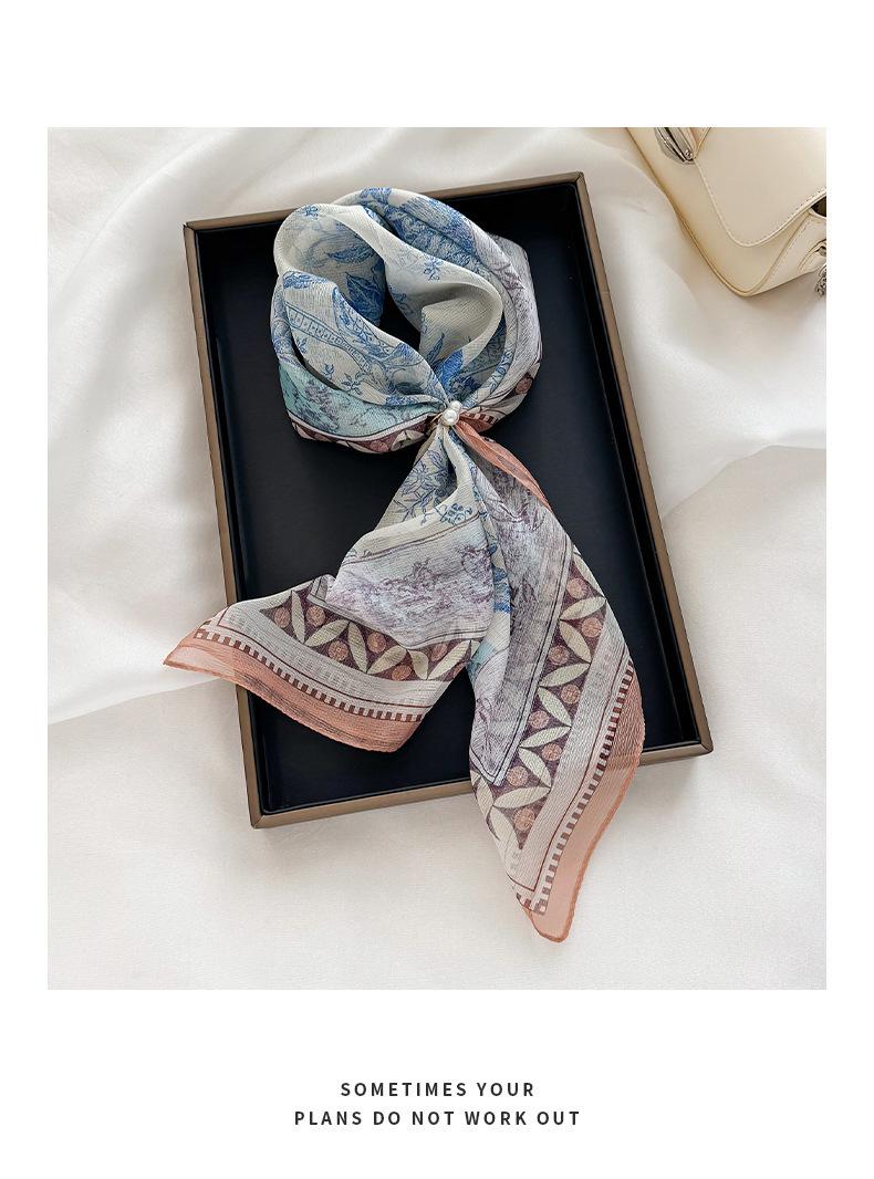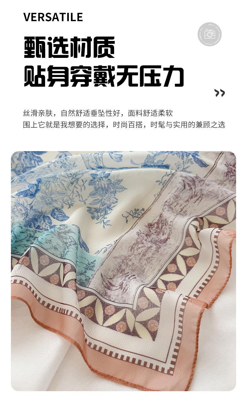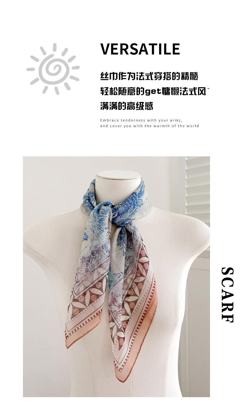 Nuevo Pañuelo Cuadrado Estampado Versátil de Primavera y Verano, Pañuelo de Moda y de Alta Gama, Pañuelo de Seda para Mujer Decorativo de Lujo Ligero para Protección Solar