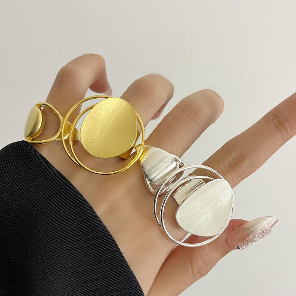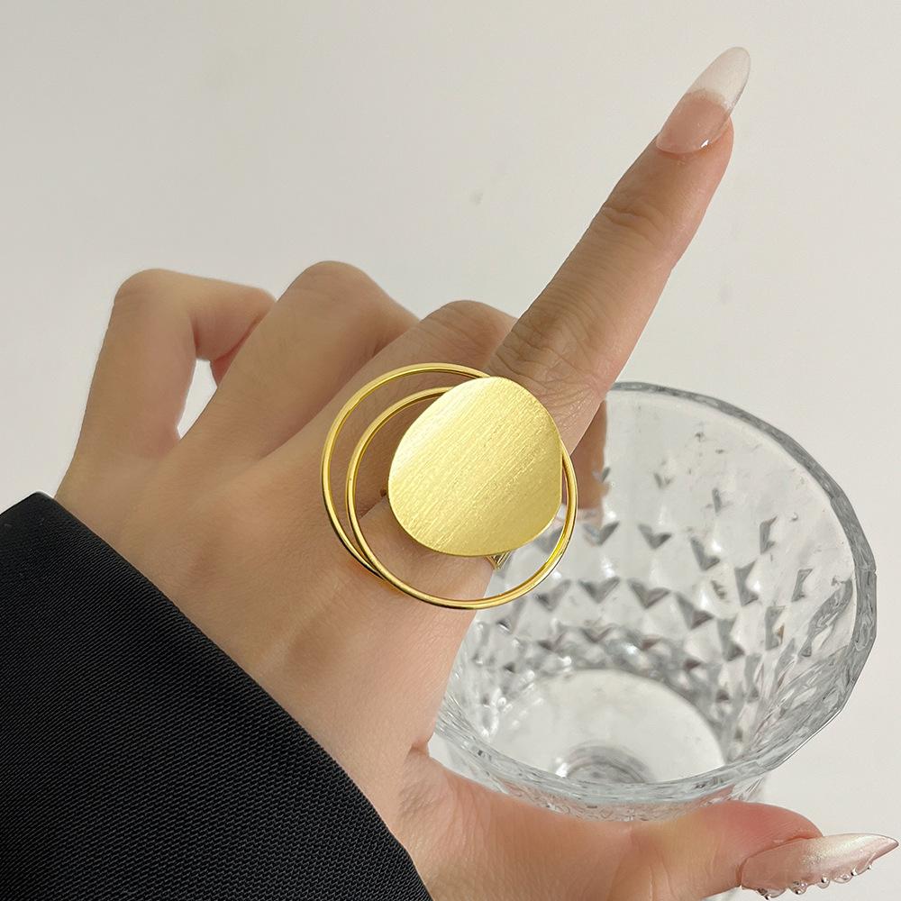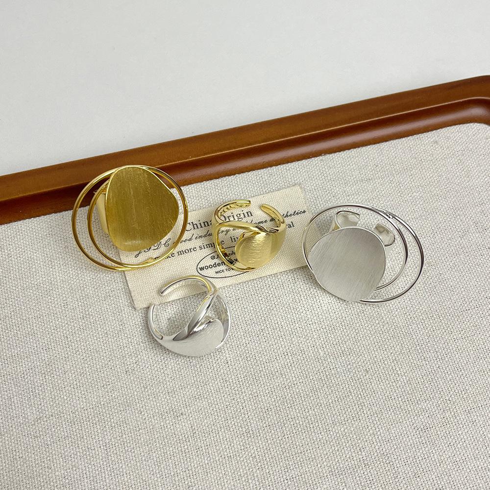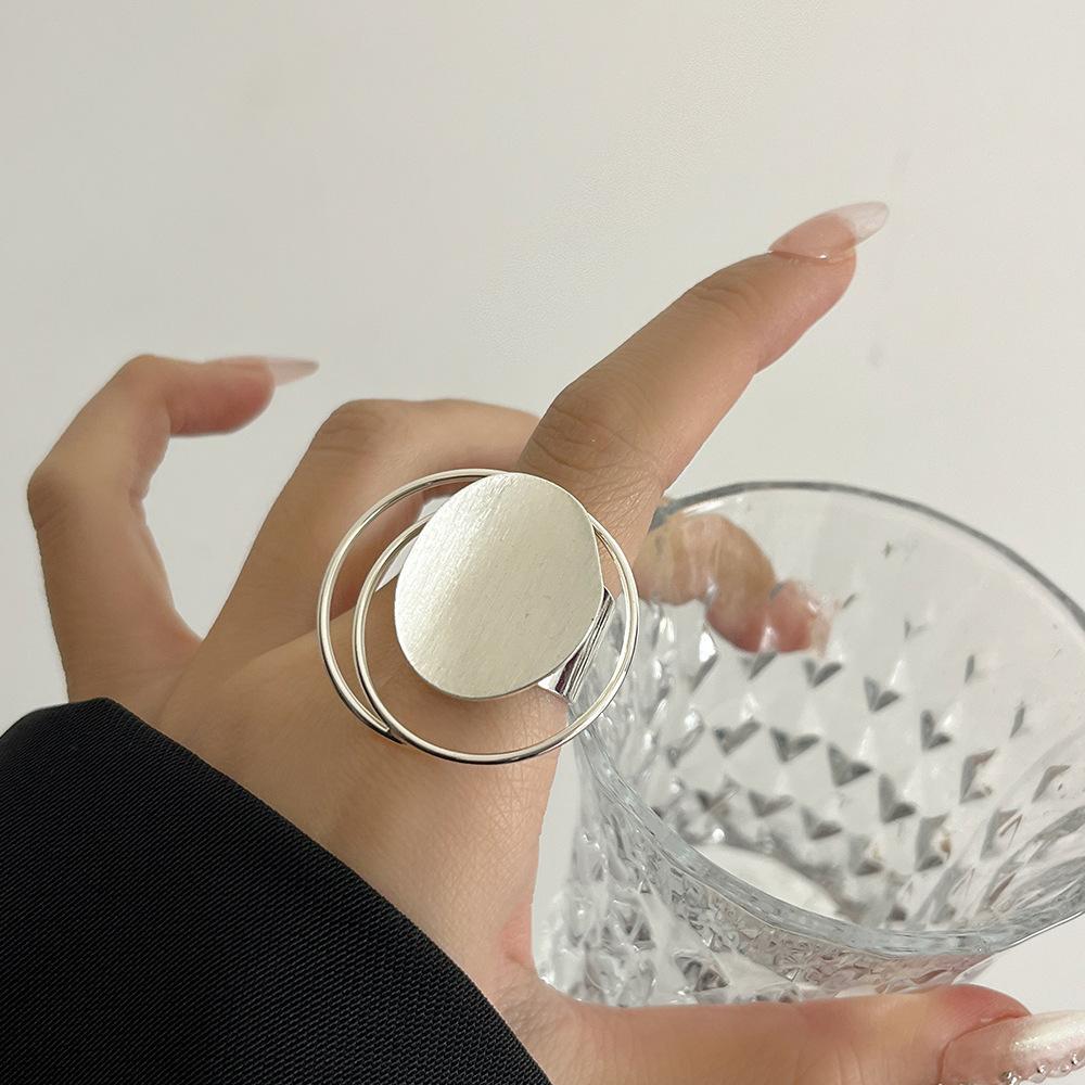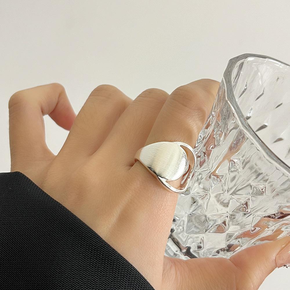 Anillo Único Cepillado Estilo Europeo y Americano para Mujer, Diseño Nicho con Metal, Anillo Versátil Abierto Hueco para Dedo Índice